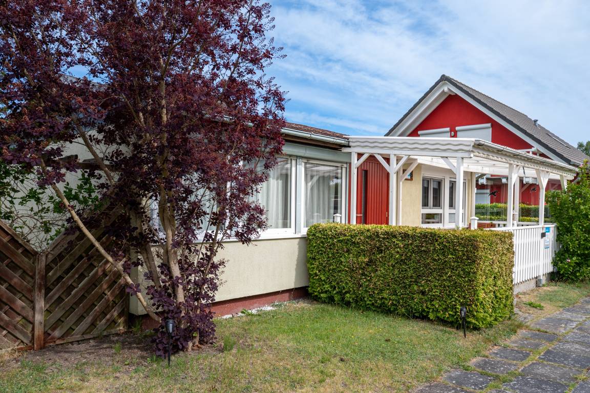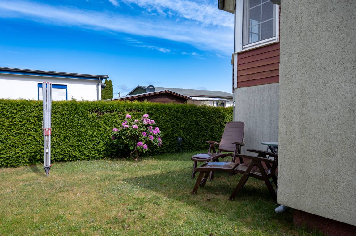 Entdecken Sie das besondere eines Urlaubsbungalows - Ihr eigenes Grundstück, auf dem Sie sich frei bewegen können, die Sicht auf das Haff, sowie einen Pkw-Stellplatz direkt vor der Anlage.