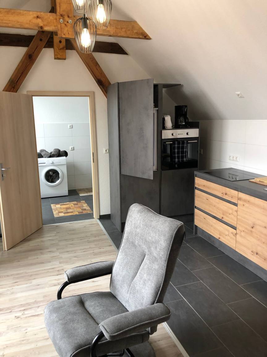 Dieses wunder schöne " Apartment am Stettiner Haff " befindet sich in der obersten Etage und ist nur über eine Wendetreppe zu erreichen für 2 bis max. 3 Personen. Genießen Sie einen erholsamen Urlaub in einem modern, rustikal eingerichteten Ferienhausapartment , die einen komfortablen Urlaub bedient. Die Wohnfläche im oberen Apartment unterteilt sich in einem Wohnschlafzimmer mit jeweils einem großzügigen Doppelbett (140 cm x 200 cm), das von zwei beidseitigen Nachttischen mit Leselampen umgeben ist. Vor dem Bett steht ein Sideboard das ausreichend Verstauungsmöglichkeiten für Ihr Reisegepäck bietet. Ein Kinderstuhl steht für die ganz kleinen Gäste kostenlos bereit. Herzstück der Wohnung ist der 36 m² umfassende Wohn- und Schlafraum, mit einer 40qm großen Dachterrasse zum raus gehen und Sonne tanken, mit integrierter Küchenzeile, einen Essbereichen und einer bequemen ausziehbaren Schlafcouch. Entspannen Sie nach einem Tagesausflug während der Flachbildfernseher mit Sat. -TV und TV-USB-Anschluss für Unterhaltung sorgt. Die offene Küche ermöglicht Ihnen eine umfangreiche Selbstversorgung anhand eines Vierzonenkochfelds, eines Backofens, eines Kühlschranks mit Gefrierfach, sowie zahlreicher Kleinelektrogeräte, von einem Toaster, Wasserkocher bis zur Kaffeemaschine. Die Wendetreppe führt zur große Dachterrasse ca. 40qm, mit Hängestuhl, Whirlpool der auf Anfrage auch genutzt werden kann ( kostenpflichtig ) sowie Lounge Möbel zum sitzen. Wir wünschen Ihnen einen angenehmen Aufenthalt.