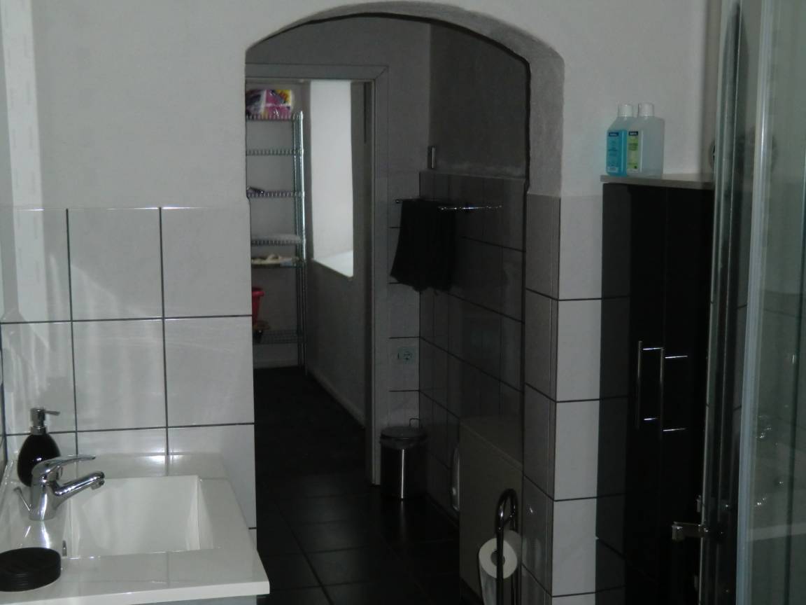 Die Wohnung hat einen eigenen Eingang mit eigener Treppe, { in der Anzeige steht zwar max drei Peronen,wären aber zwei Erwachsene und zwei Kinder möglich ]
