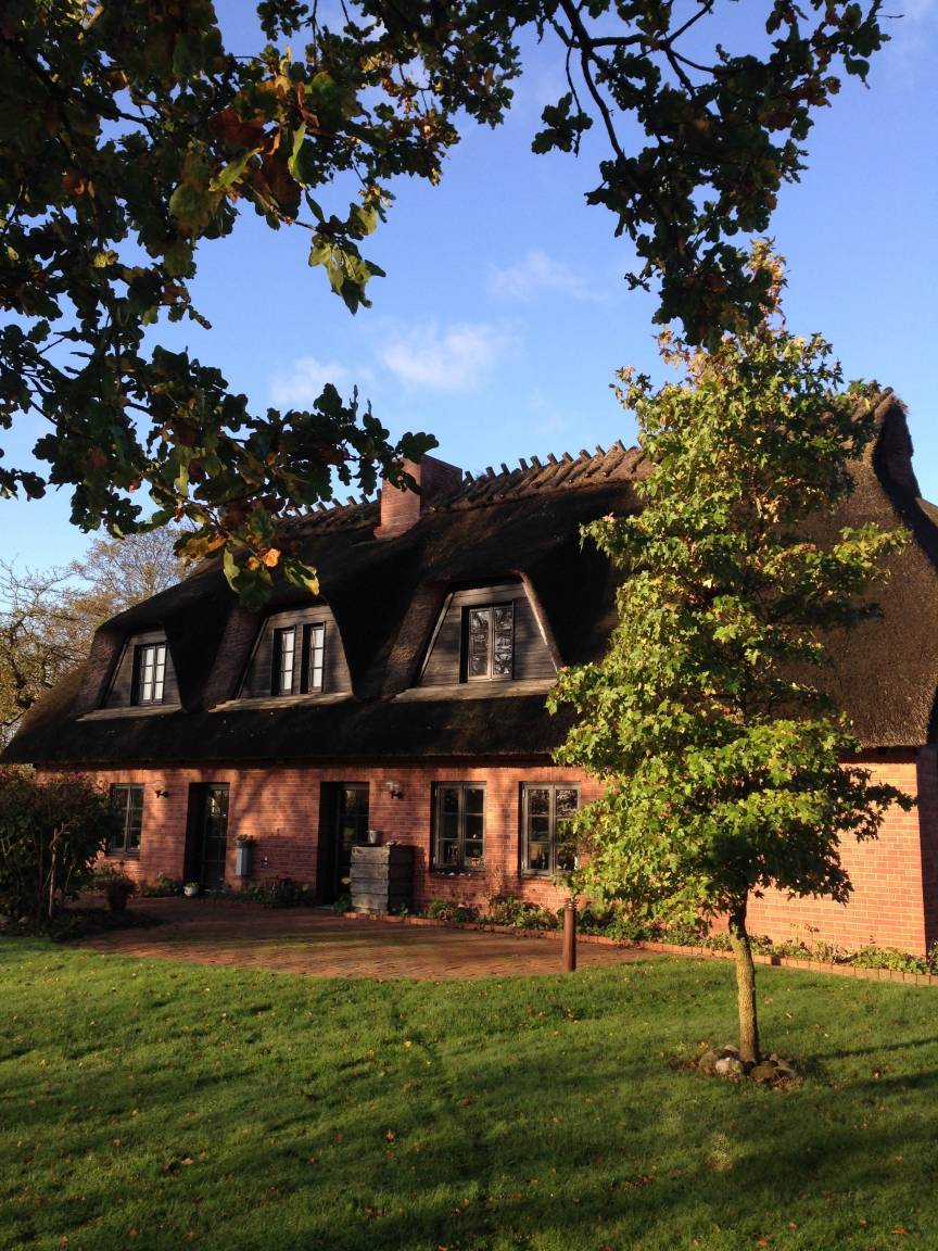 Genießen Sie Ruhe und Komfort in einer charmanten Reetdachhaushälfte nahe der Schlei - ländlich gelegen auf 10.000 qm, ideal für Paare oder Familien, mit zwei Bädern, WLAN und großem Naturgrundstück.
