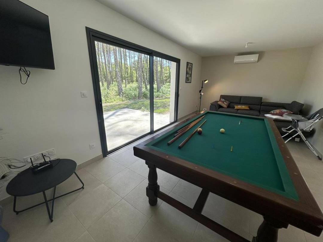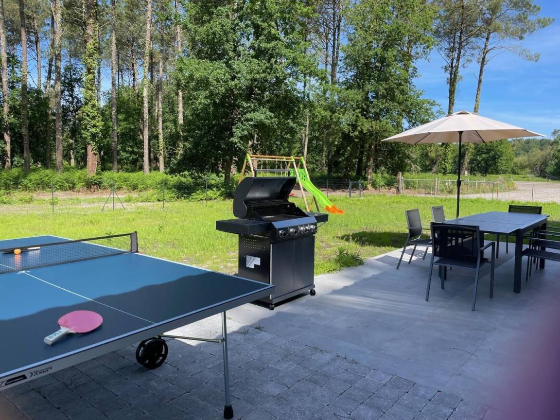 „Une maison toute neuve avec balançoire billard ping-pong reculée de la route. Au calme, ombragée. Tout pour s’amuser, se reposer et faire de bonnes grillades avec un super barbecue“