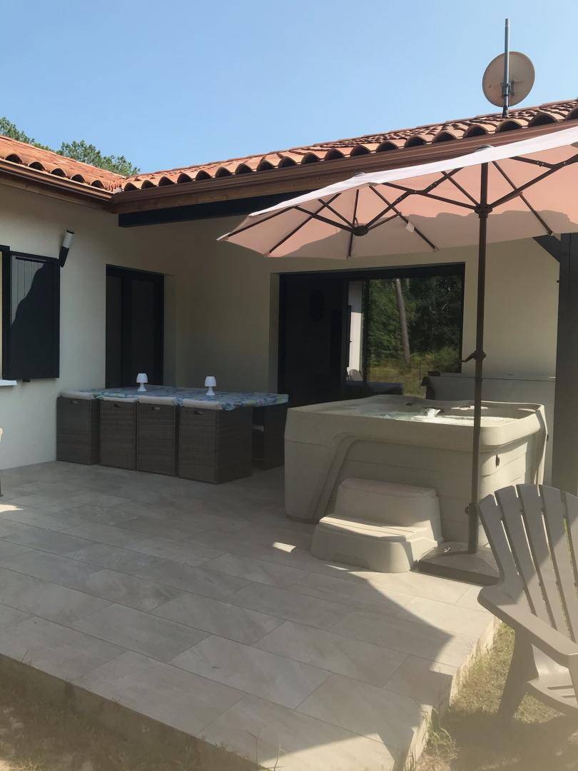 „Maison au calme, agréable à vivre, super bien équipée (jacuzzi, table de ping pong, baby-foot…) Grand jardin, entouré de la forêt et quand même proche des commerces, piste cyclable, plageNous avons passé une excellente semaine en famille“