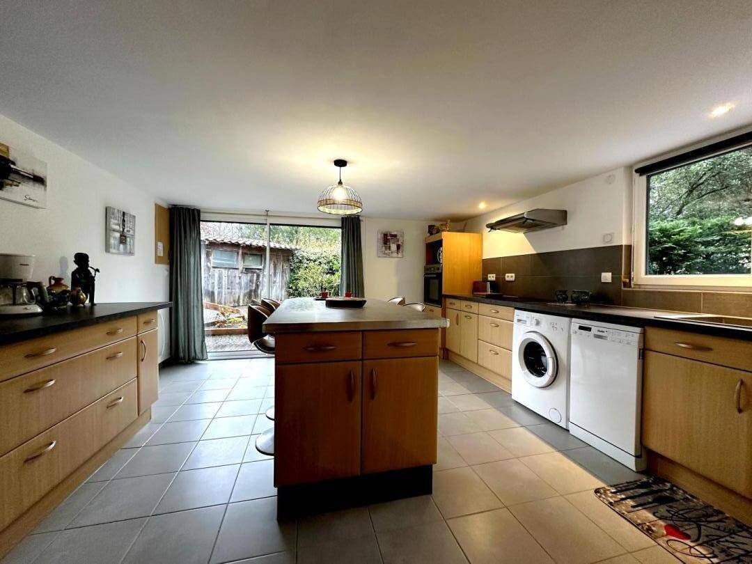 ausgestattet mit amerikanischem Kühlschrank, Gefrierfach, Kühlfach (Wasserspender), Backofen, Mikrowelle, 3 Induktionskochfeldern, Geschirrspüler, Bullauge-Waschmaschine, Erkerfenster mit Blick auf den privaten Garten,