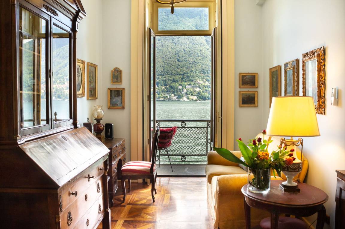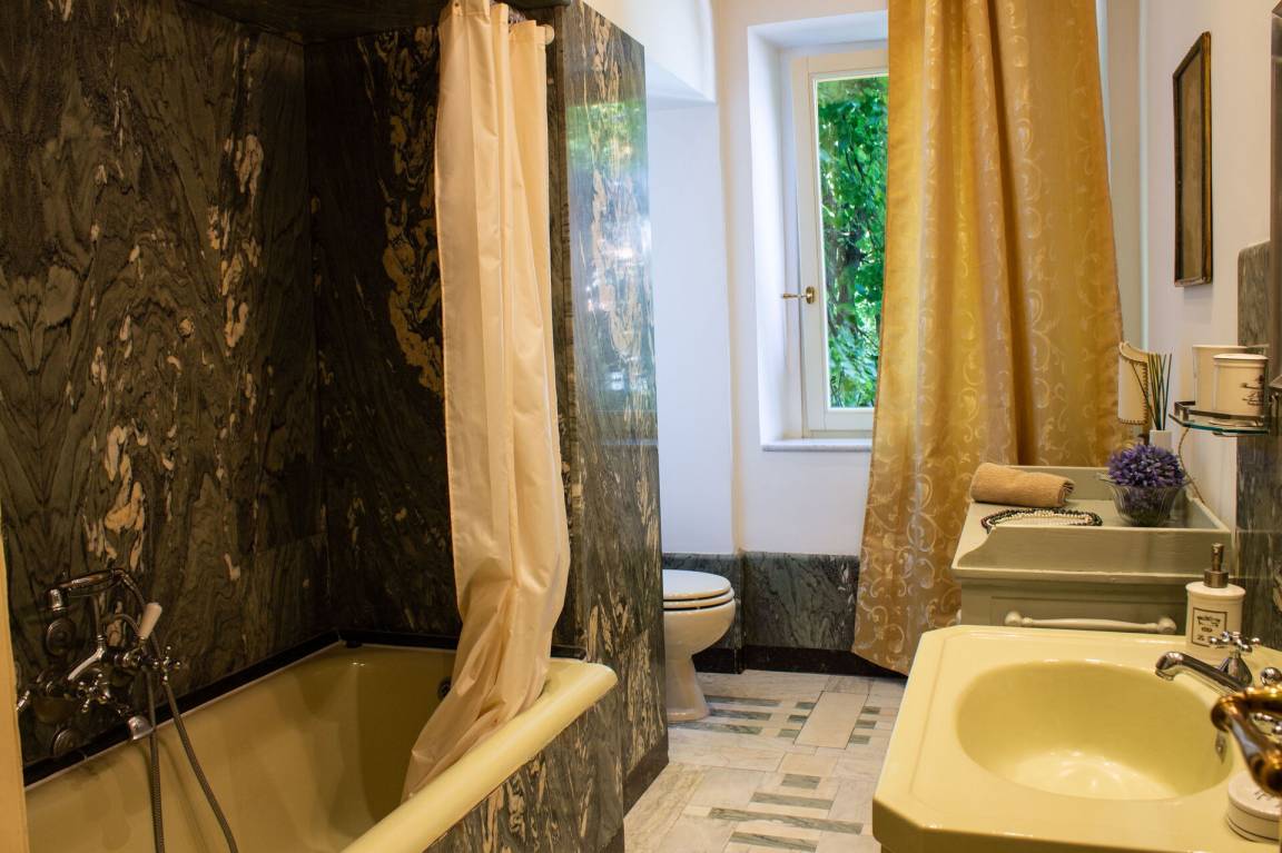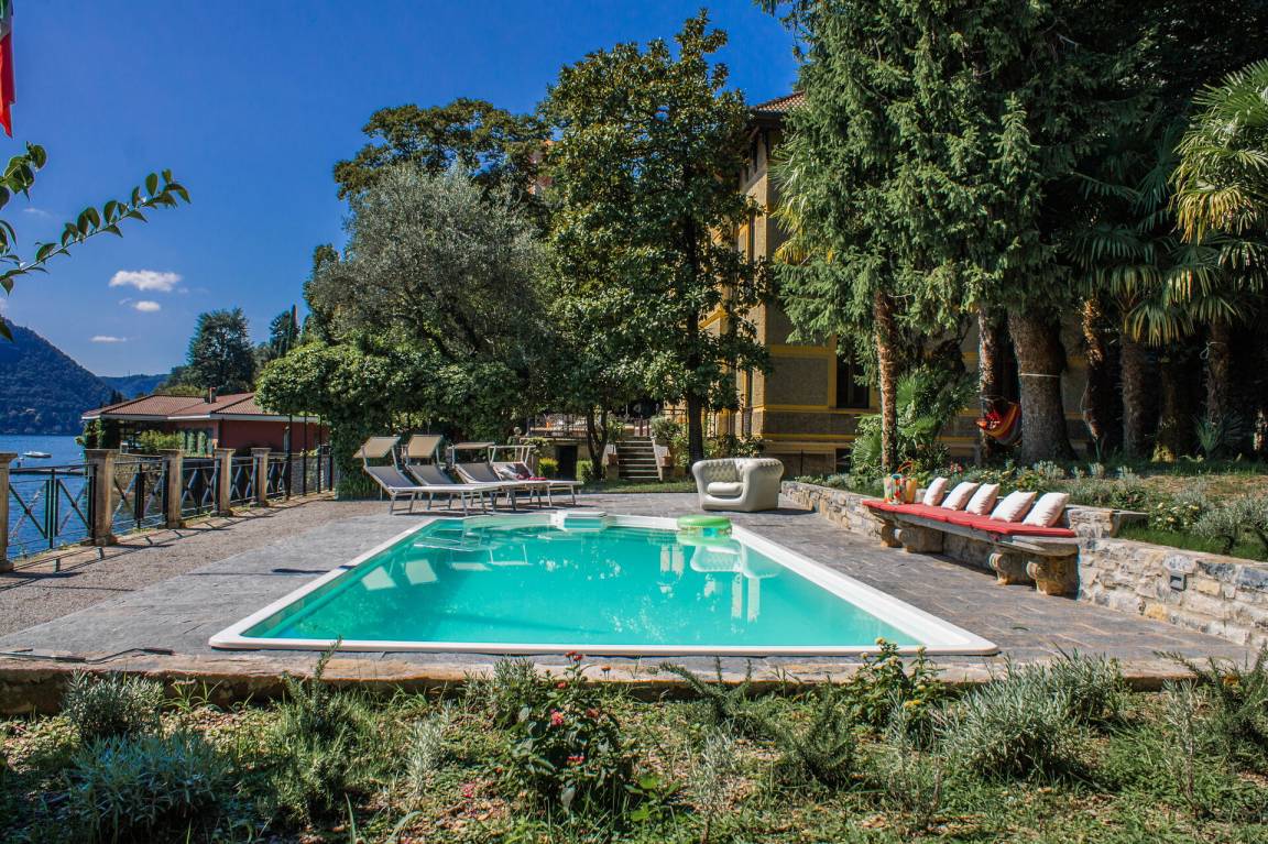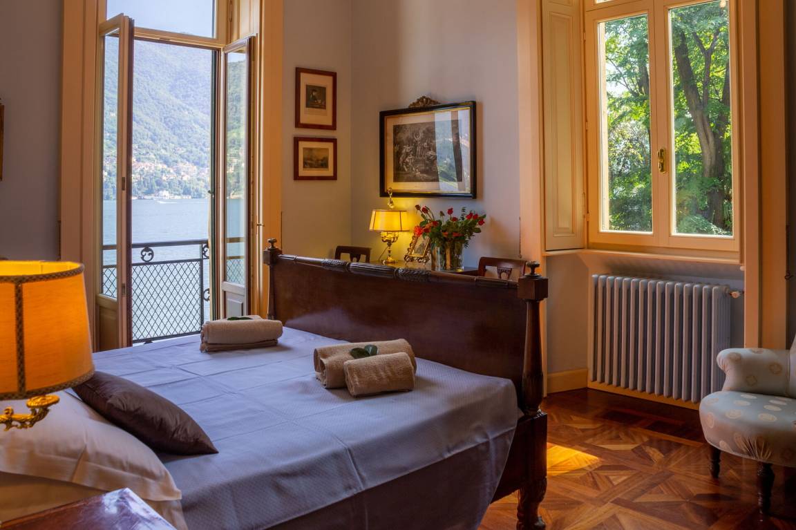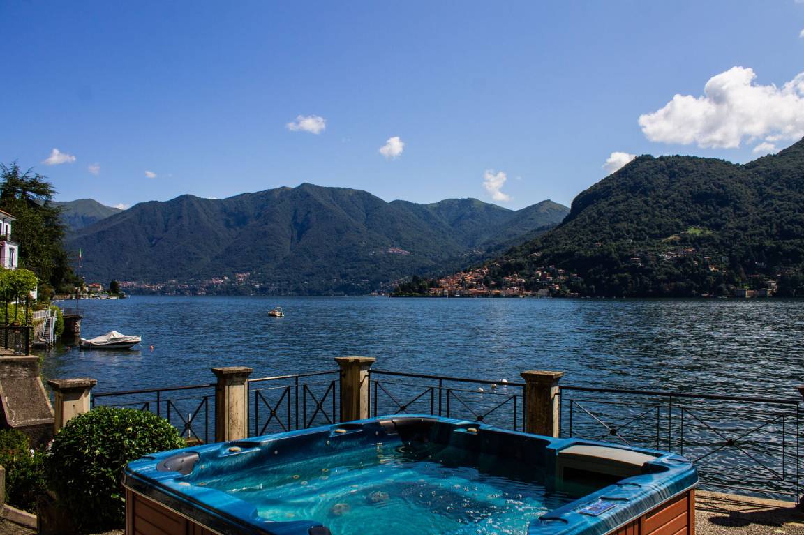 Sie werden feststellen, dass sich diese beeindruckende Ferienunterkunft über 600 Quadratmeter auf drei Etagen plus einem Kellergeschoss erstreckt und bequem bis zu 16 Gäste in 9 Schlafzimmern mit 7 Badezimmern beherbergt. Das Erdgeschoss empfängt Sie durch einen Eingangsbereich, der zu einem geräumigen Esszimmer mit Kamin und französischen Türen führt, die sich zu einer Panoramaterrasse öffnen. Sie werden ein Doppelwohnzimmer entdecken, das mit Sofas und historischen Möbeln ausgestattet ist, zusammen mit französischen Türen, die sich zur Terrasse öffnen und einen malerischen Seeblick bieten. Diese Ebene umfasst eine gut ausgestattete Küche mit einem Fünf-Flammen-Herd, Backofen, Espressomaschine, Kühlschrank mit Eiswürfelbereiter, Toaster, Mixer und Filterkaffeemaschine sowie eine zweite vollständig ausgestattete Küche. Ein Badezimmer mit Dusche vervollständigt das Erdgeschoss, und eine Treppe führt in den ersten Stock. Der erste Stock bietet Platz für 8 Gäste und umfasst 4 Doppelschlafzimmer mit Seeblick und 4 Badezimmer. Ein Badezimmer verfügt über Marmorausstattung mit Whirlpool-Badewanne, ein weiteres Marmorbadezimmer umfasst eine Standard-Badewanne, und ein geräumiges Badezimmer bietet Doppelwaschbecken, eine Whirlpool-Badewanne mit Klauenfüßen und eine separate Duschkabine mit Dampf- und Wassermassage. Das vierte Badezimmer verfügt über eine Hydromassage-Dusche. Ein zusätzliches Einzelschlafzimmer ist auf Anfrage gegen Aufpreis verfügbar. Das Obergeschoss bietet Platz für 8 Gäste ohne Seeblick und umfasst ein großes Kingsize-Schlafzimmer, das nicht getrennt werden kann, mit einem angrenzenden Einzelbett und Kleiderschrank sowie drei Zweibettzimmer mit Betten, die nicht zusammengestellt werden können. Diese Etage verfügt über ein großes Badezimmer mit Dusche und Whirlpool-Badewanne sowie ein Badezimmer mit Dusche. Das Kellergeschoss beherbergt eine Waschküche und einen Weinkeller.