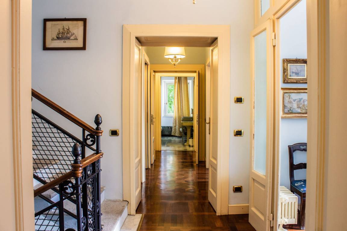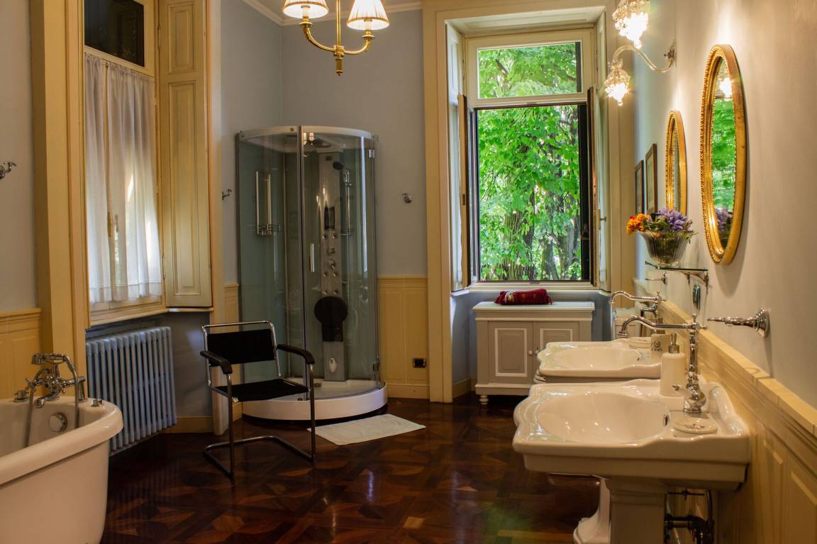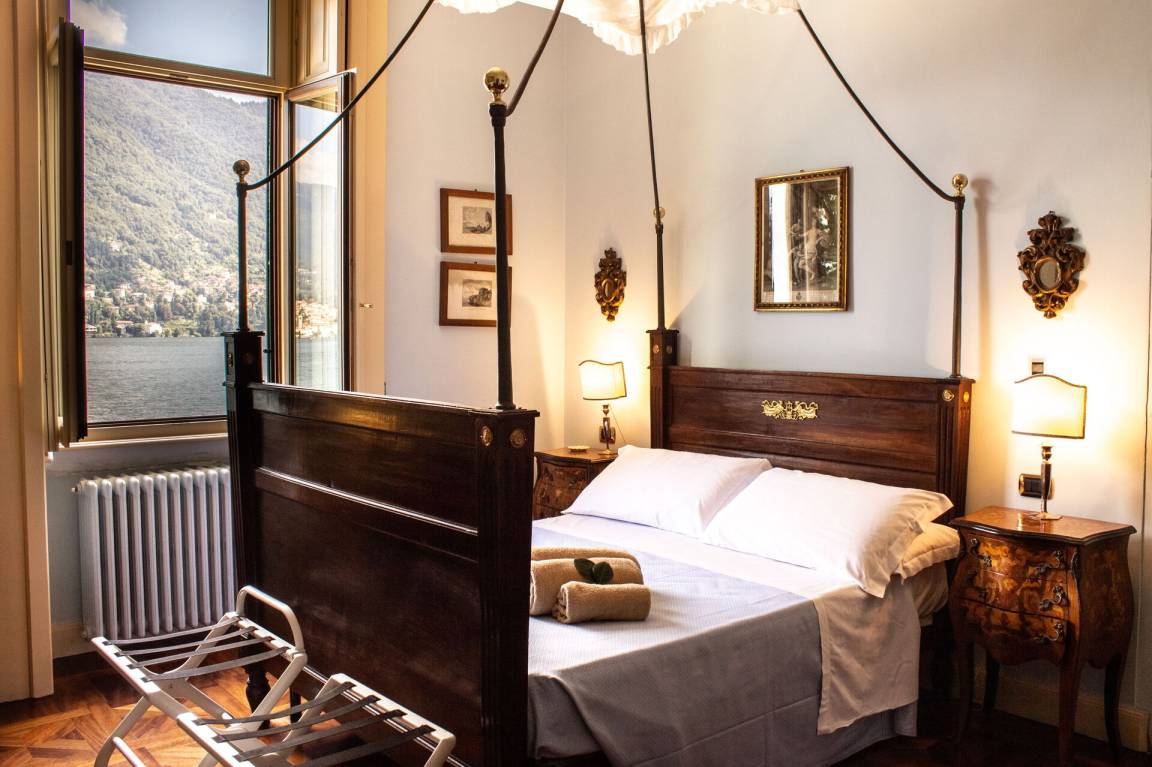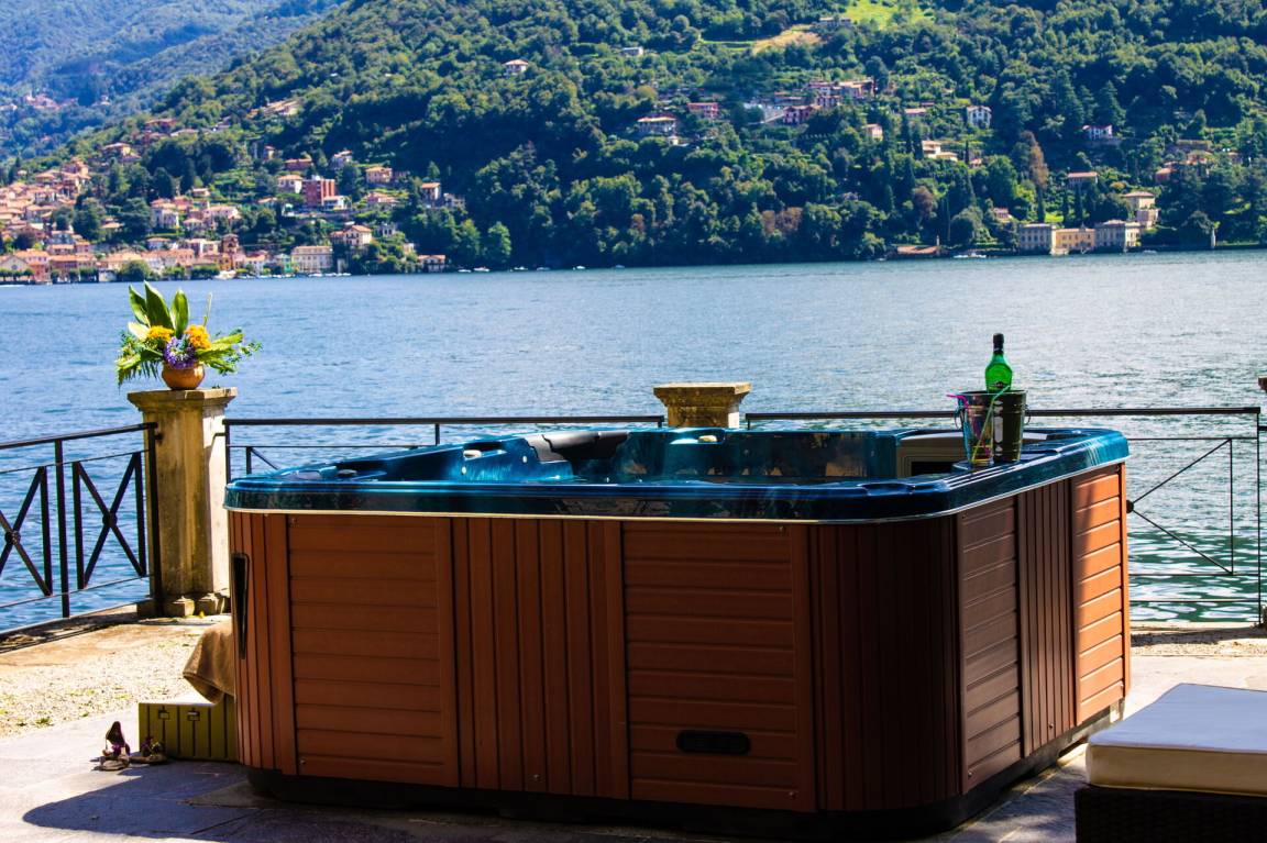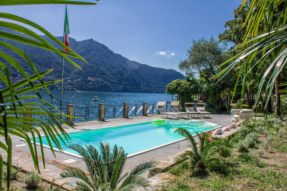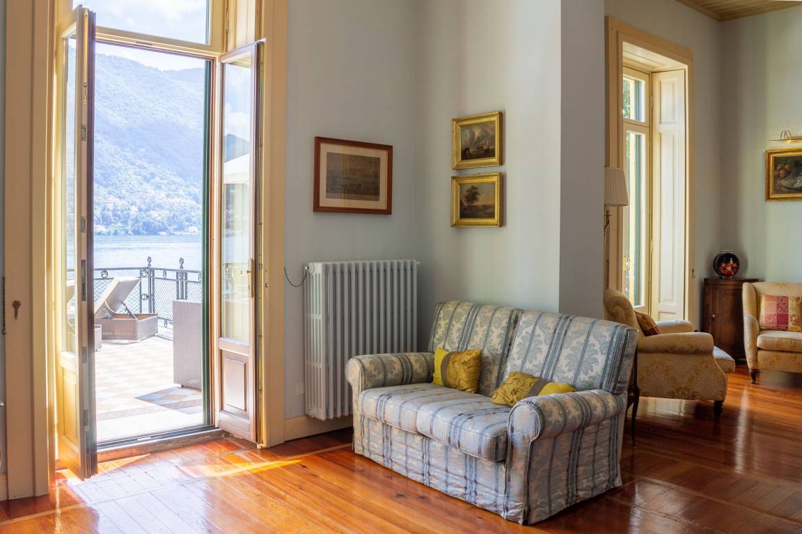 Sie werden feststellen, dass sich diese beeindruckende Ferienunterkunft über 600 Quadratmeter auf drei Etagen plus einem Kellergeschoss erstreckt und bequem bis zu 16 Gäste in 9 Schlafzimmern mit 7 Badezimmern beherbergt. Das Erdgeschoss empfängt Sie durch einen Eingangsbereich, der zu einem geräumigen Esszimmer mit Kamin und französischen Türen führt, die sich zu einer Panoramaterrasse öffnen. Sie werden ein Doppelwohnzimmer entdecken, das mit Sofas und historischen Möbeln ausgestattet ist, zusammen mit französischen Türen, die sich zur Terrasse öffnen und einen malerischen Seeblick bieten. Diese Ebene umfasst eine gut ausgestattete Küche mit einem Fünf-Flammen-Herd, Backofen, Espressomaschine, Kühlschrank mit Eiswürfelbereiter, Toaster, Mixer und Filterkaffeemaschine sowie eine zweite vollständig ausgestattete Küche. Ein Badezimmer mit Dusche vervollständigt das Erdgeschoss, und eine Treppe führt in den ersten Stock. Der erste Stock bietet Platz für 8 Gäste und umfasst 4 Doppelschlafzimmer mit Seeblick und 4 Badezimmer. Ein Badezimmer verfügt über Marmorausstattung mit Whirlpool-Badewanne, ein weiteres Marmorbadezimmer umfasst eine Standard-Badewanne, und ein geräumiges Badezimmer bietet Doppelwaschbecken, eine Whirlpool-Badewanne mit Klauenfüßen und eine separate Duschkabine mit Dampf- und Wassermassage. Das vierte Badezimmer verfügt über eine Hydromassage-Dusche. Ein zusätzliches Einzelschlafzimmer ist auf Anfrage gegen Aufpreis verfügbar. Das Obergeschoss bietet Platz für 8 Gäste ohne Seeblick und umfasst ein großes Kingsize-Schlafzimmer, das nicht getrennt werden kann, mit einem angrenzenden Einzelbett und Kleiderschrank sowie drei Zweibettzimmer mit Betten, die nicht zusammengestellt werden können. Diese Etage verfügt über ein großes Badezimmer mit Dusche und Whirlpool-Badewanne sowie ein Badezimmer mit Dusche. Das Kellergeschoss beherbergt eine Waschküche und einen Weinkeller.