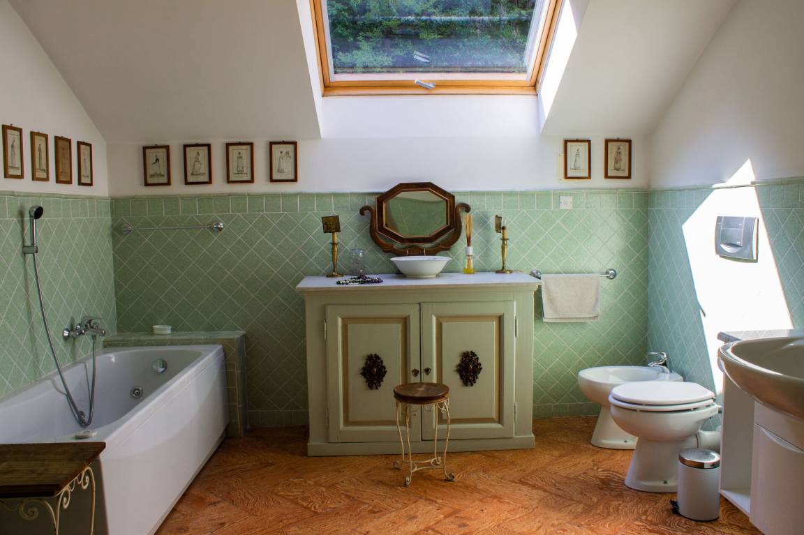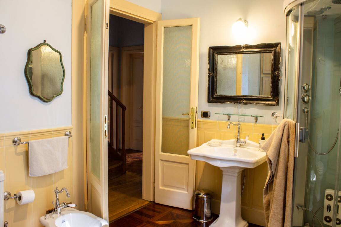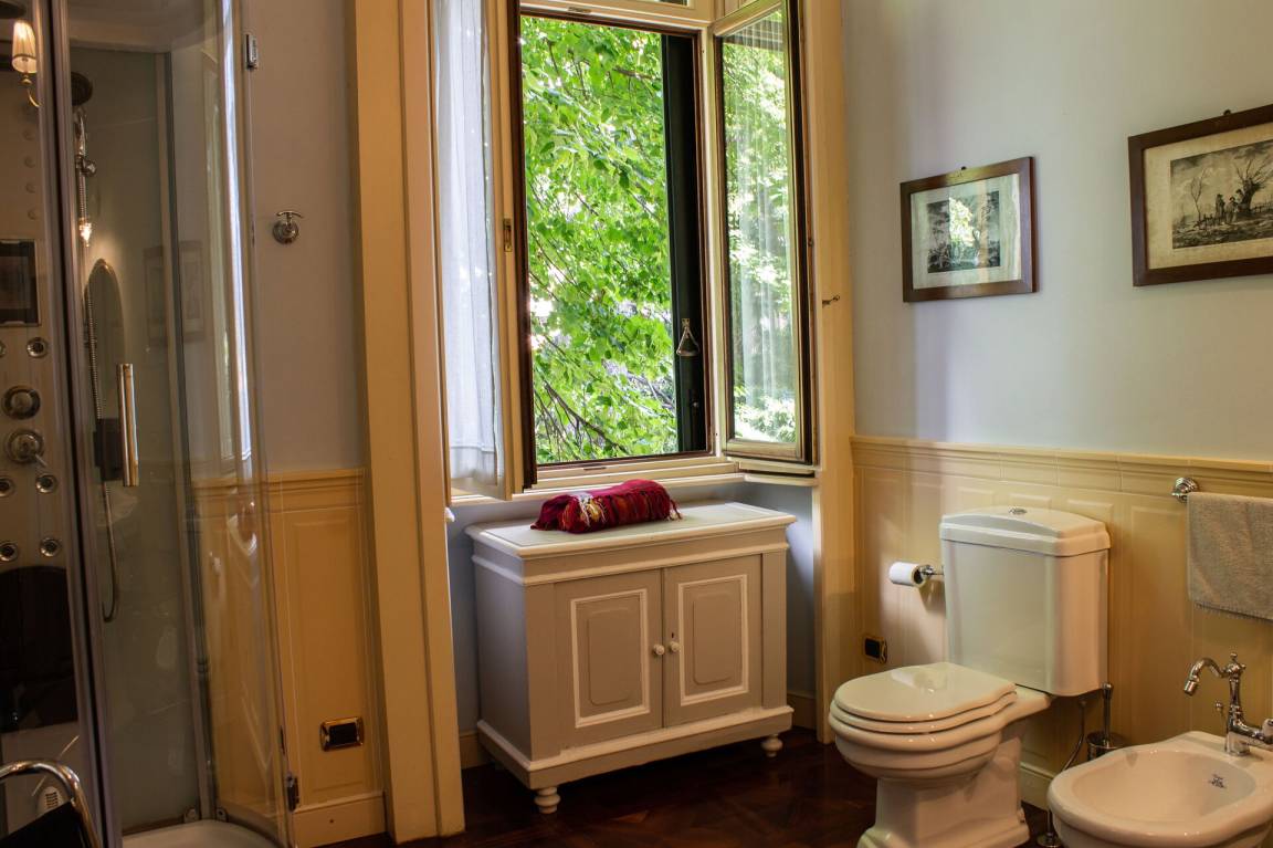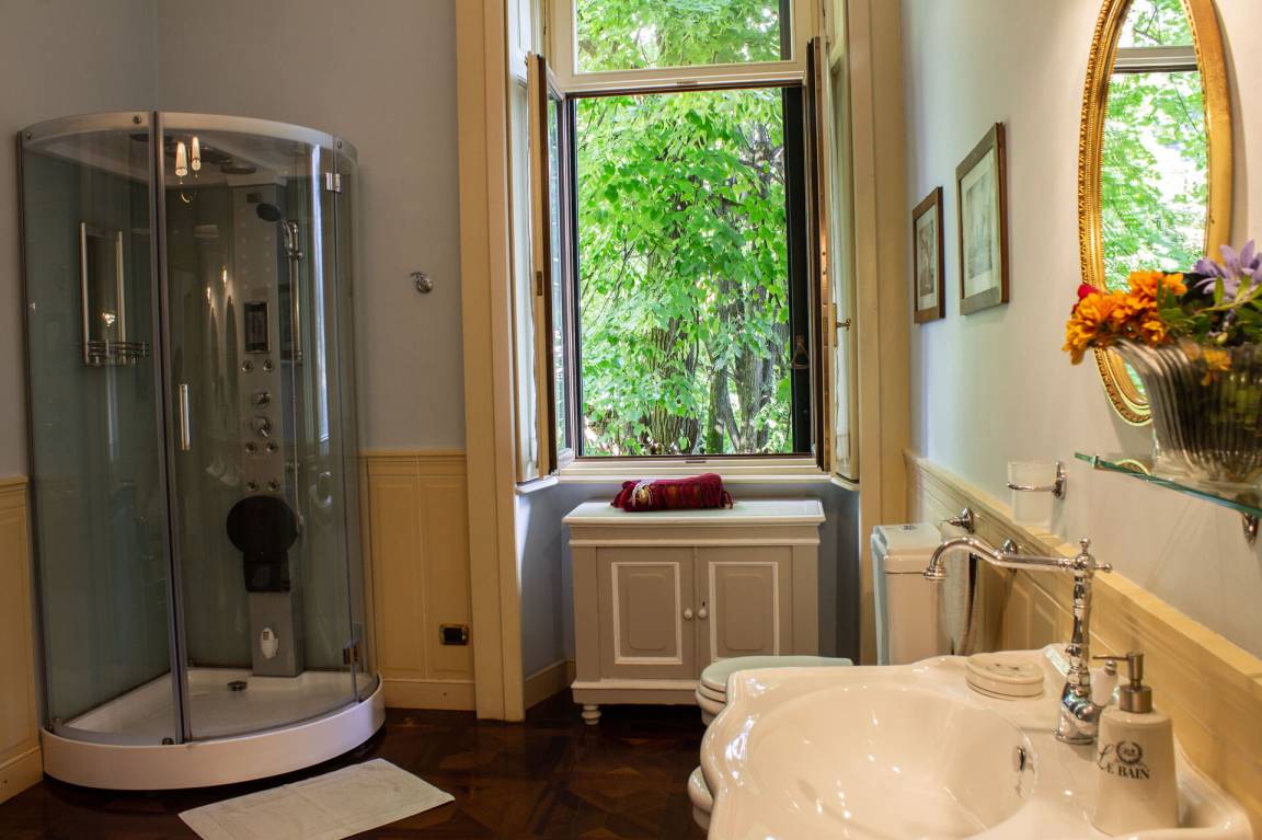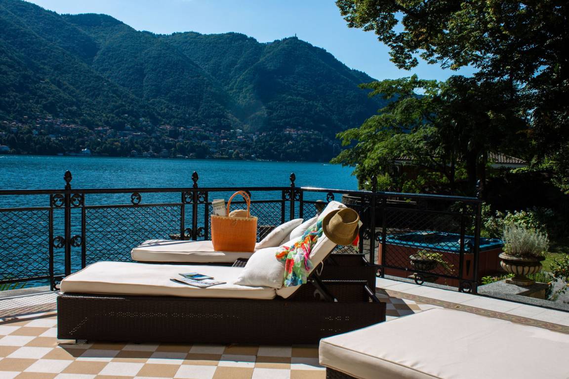 Sie werden feststellen, dass sich diese beeindruckende Ferienunterkunft über 600 Quadratmeter auf drei Etagen plus einem Kellergeschoss erstreckt und bequem bis zu 16 Gäste in 9 Schlafzimmern mit 7 Badezimmern beherbergt. Das Erdgeschoss empfängt Sie durch einen Eingangsbereich, der zu einem geräumigen Esszimmer mit Kamin und französischen Türen führt, die sich zu einer Panoramaterrasse öffnen. Sie werden ein Doppelwohnzimmer entdecken, das mit Sofas und historischen Möbeln ausgestattet ist, zusammen mit französischen Türen, die sich zur Terrasse öffnen und einen malerischen Seeblick bieten. Diese Ebene umfasst eine gut ausgestattete Küche mit einem Fünf-Flammen-Herd, Backofen, Espressomaschine, Kühlschrank mit Eiswürfelbereiter, Toaster, Mixer und Filterkaffeemaschine sowie eine zweite vollständig ausgestattete Küche. Ein Badezimmer mit Dusche vervollständigt das Erdgeschoss, und eine Treppe führt in den ersten Stock. Der erste Stock bietet Platz für 8 Gäste und umfasst 4 Doppelschlafzimmer mit Seeblick und 4 Badezimmer. Ein Badezimmer verfügt über Marmorausstattung mit Whirlpool-Badewanne, ein weiteres Marmorbadezimmer umfasst eine Standard-Badewanne, und ein geräumiges Badezimmer bietet Doppelwaschbecken, eine Whirlpool-Badewanne mit Klauenfüßen und eine separate Duschkabine mit Dampf- und Wassermassage. Das vierte Badezimmer verfügt über eine Hydromassage-Dusche. Ein zusätzliches Einzelschlafzimmer ist auf Anfrage gegen Aufpreis verfügbar. Das Obergeschoss bietet Platz für 8 Gäste ohne Seeblick und umfasst ein großes Kingsize-Schlafzimmer, das nicht getrennt werden kann, mit einem angrenzenden Einzelbett und Kleiderschrank sowie drei Zweibettzimmer mit Betten, die nicht zusammengestellt werden können. Diese Etage verfügt über ein großes Badezimmer mit Dusche und Whirlpool-Badewanne sowie ein Badezimmer mit Dusche. Das Kellergeschoss beherbergt eine Waschküche und einen Weinkeller.