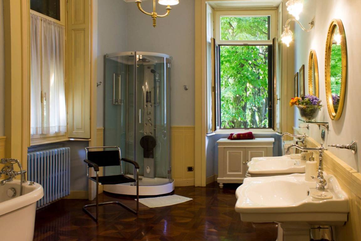 Das erste Obergeschoss ist 4 Doppelschlafzimmern gewidmet, von denen jedes einen wunderbaren Seeblick bietet. Dieses Geschoss verfügt über 4 Bäder mit unterschiedlichem Charakter: ein Marmorbad mit Whirlpool-Badewanne, ein Marmorbad mit Standard-Badewanne, ein großes Bad mit Doppelwaschbecken, freistehender Whirlpool-Badewanne und separater Duschkabine mit Dampf- und Wassermassage sowie ein Bad mit Hydromassage-Dusche.