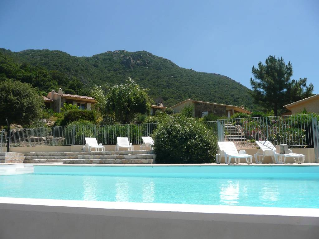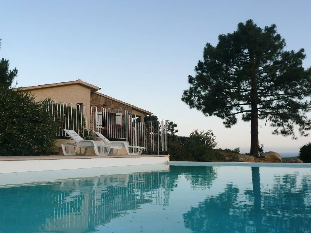 „Belle piscine à débordement, mais collective. Envahissement de chats rendus à la nature et affamés. Petites odeurs de fosse sceptique dommage...Près de Monacia d'Aullene petit village avec du charme.“