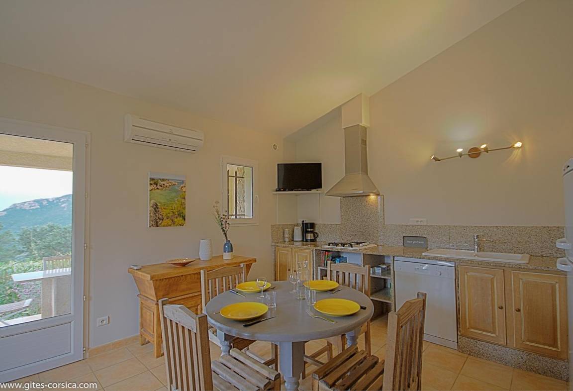 „Une fois sur place, nous avons préféré un autre logement en raison d’une plus belle vue sur le paysage. La propriétaire a très aimablement accepté ce changement (par téléphone à l’arrivée).L’équipement assez pauvre n’est donc pas celui du gîte référencé: Pas de planche à découper, pas de cafetière filtre ni italienne, pas de couteau qui coupe vraiment (pour la charcuterie et les fromages corses), pas de bac à glaçons… pas de guide des balades, pas de fiche pour se connecter au WiFi… En revanche, tous les produits et accessoires de nettoyage sont disponibles. Le barbecue extérieur est très pratique. Indépendamment du gîte, la piscine du lotissement n’était pas opérationnelle (eau verte non traitée de tout le séjour).Nous n’avons pas eu de conseil de balades mais on s’est très bien débrouillés et les environs sont vraiment magnifiques. La localisation est excellente pour rayonner dans la région. Nous avons passé un très bon séjour.“