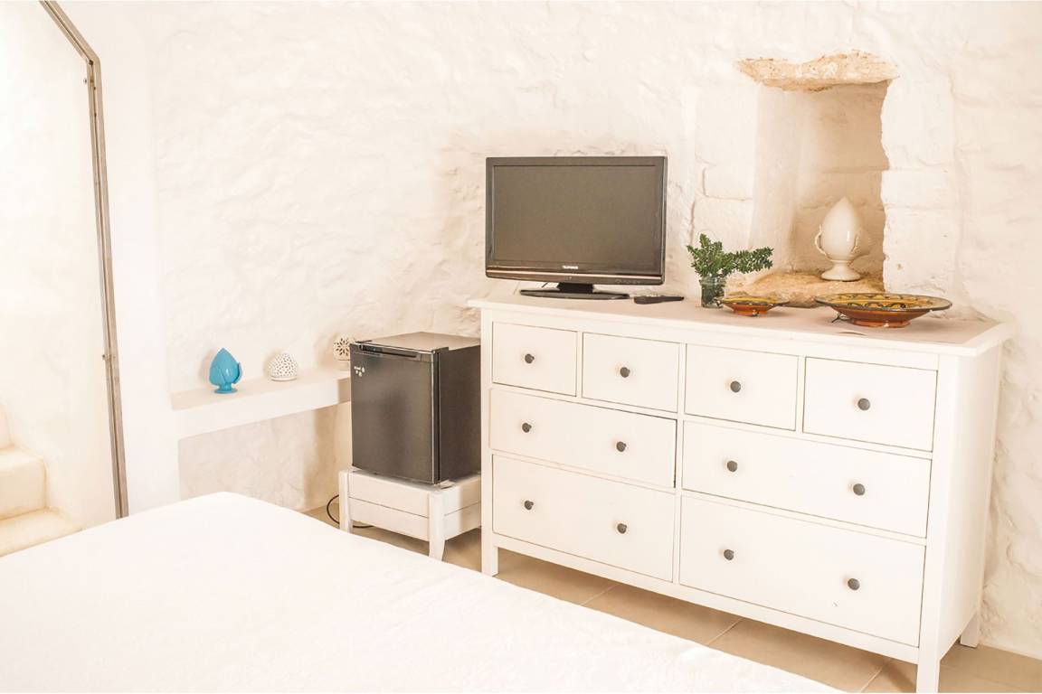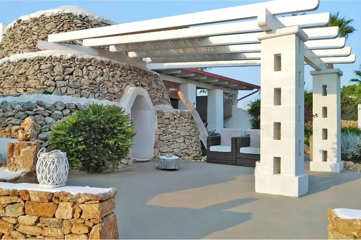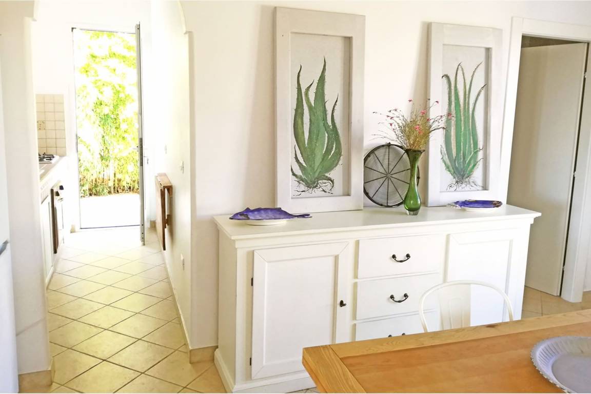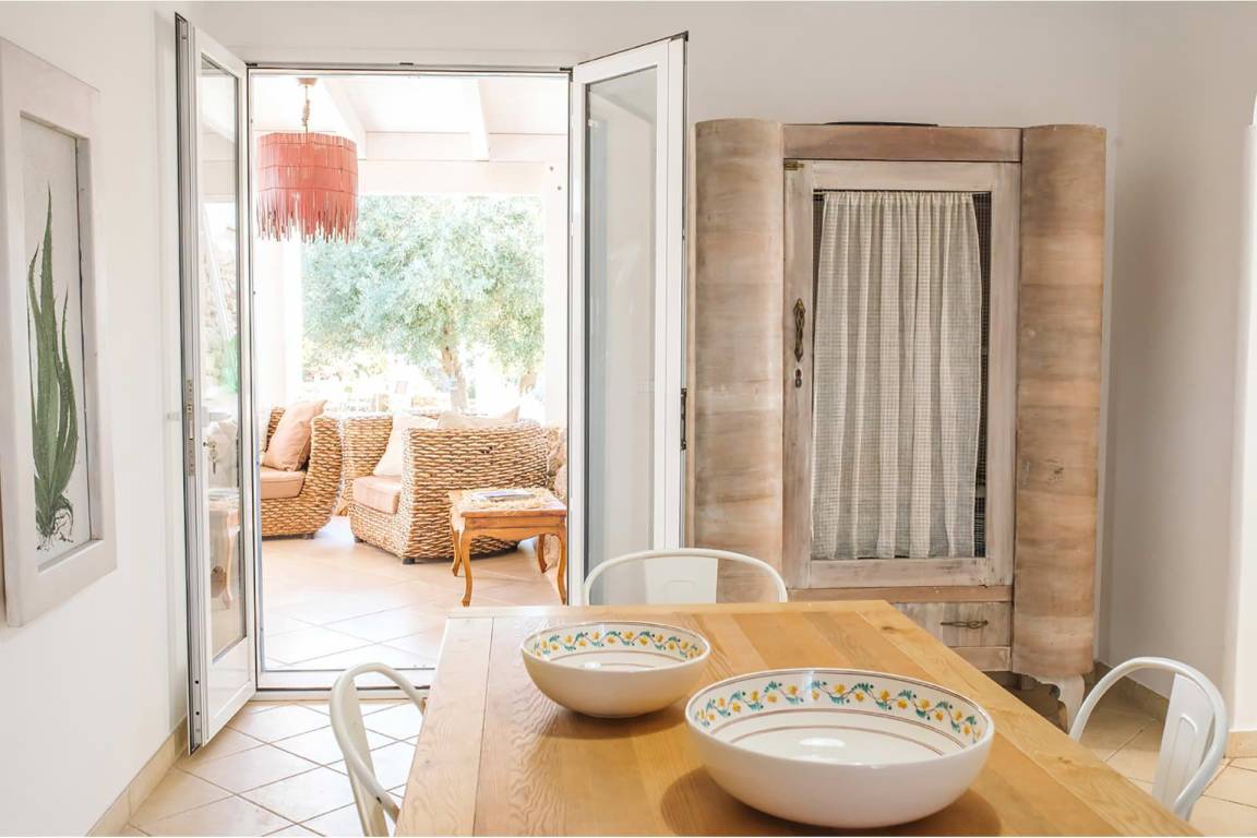 Die Villa La Rezza bietet Platz für maximal 6 Gäste und verfügt über 3 Schlafzimmer, 2 Bäder und 2 architektonisch unterschiedliche Gebäudeteile. Der Haupttrakt beherbergt das Wohnzimmer, eine vollständig ausgestattete Küche, 2 Schlafzimmer und 1 Bad. Ein separater Trullo aus dem 19. Jahrhundert, eine typische Steinbauweise der Salento-Region mit eigenem Zugang, enthält das dritte Schlafzimmer mit eigenem Bad. Das Gebäude wurde unter Verwendung lokaler Materialien und traditioneller Bautechniken vollständig renoviert und zeichnet sich durch weiß getünchte Wände und Natursteinoberflächen aus. Die Einrichtung ist schlicht und harmoniert mit den Farben und dem Stil des Gebäudes.