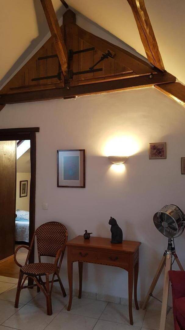 „Gîte bien équipé et suffisamment grand pour 3 personnes. La cour fermée est très pratique pour un animal de compagnie et pour profiter de la pelouse. Par beau temps nous avons utiliser quotidiennement le barbecue. La région avec château Landon, souppes sur loing et la vallée du loing permet de belles balades.“