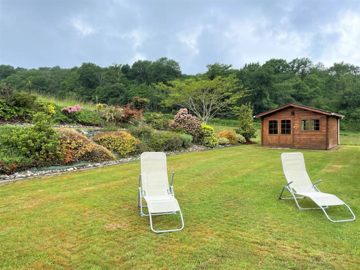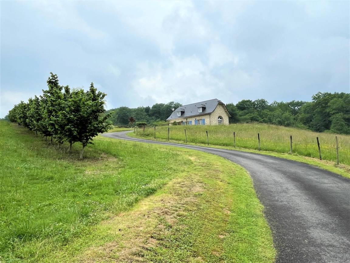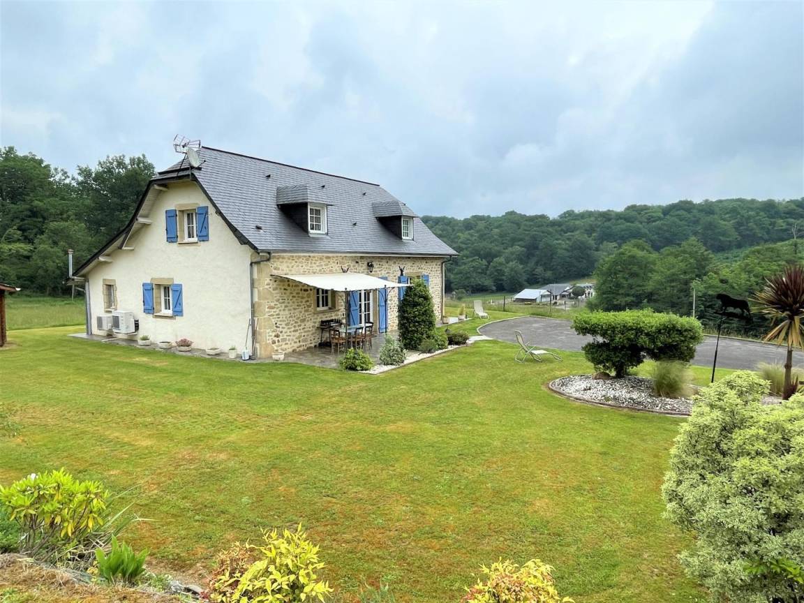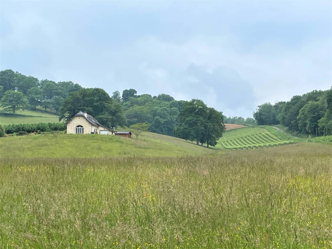 In einer geschützten Umgebung, einer grünen Umgebung aus Wäldern, Wiesen, Jurançon-Weinbergen und Haselnussbäumen, befindet sich die Gîte Ticoulat auf der Spitze eines Hügels.