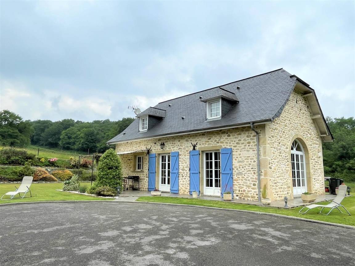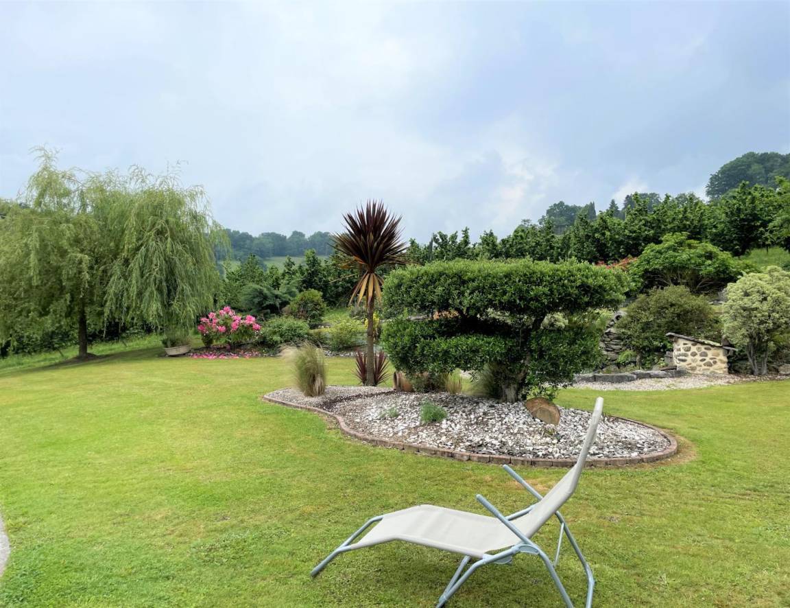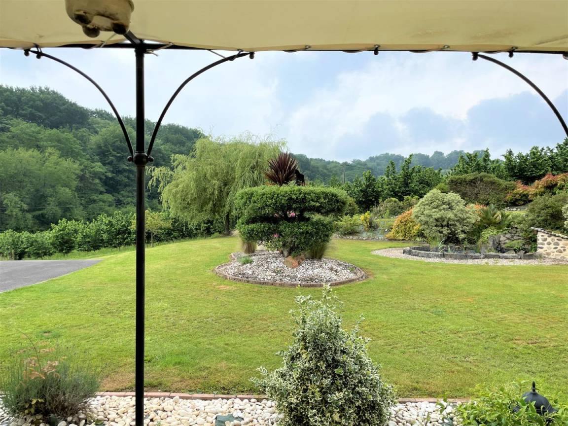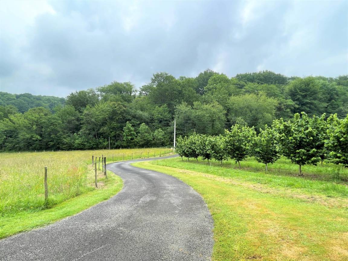 In einer geschützten Umgebung, einer grünen Umgebung aus Wäldern, Wiesen, Jurançon-Weinbergen und Haselnussbäumen, befindet sich die Gîte Ticoulat auf der Spitze eines Hügels.