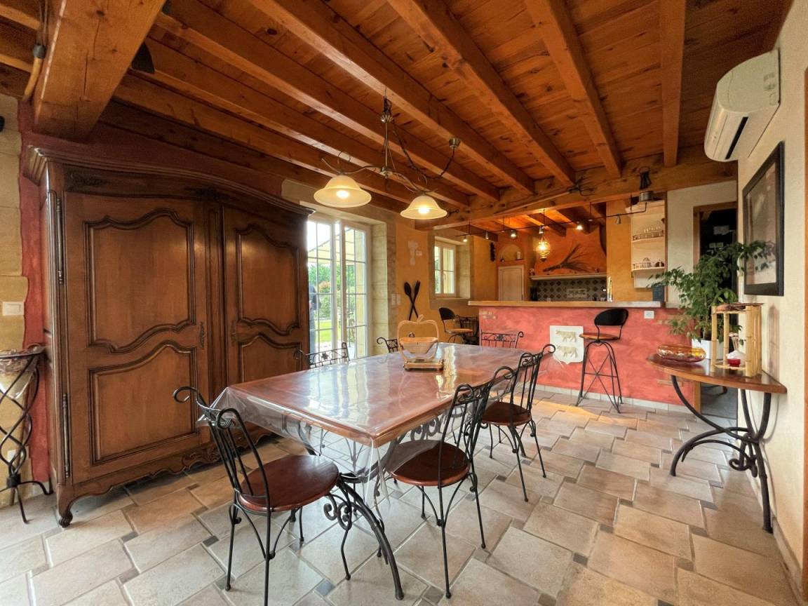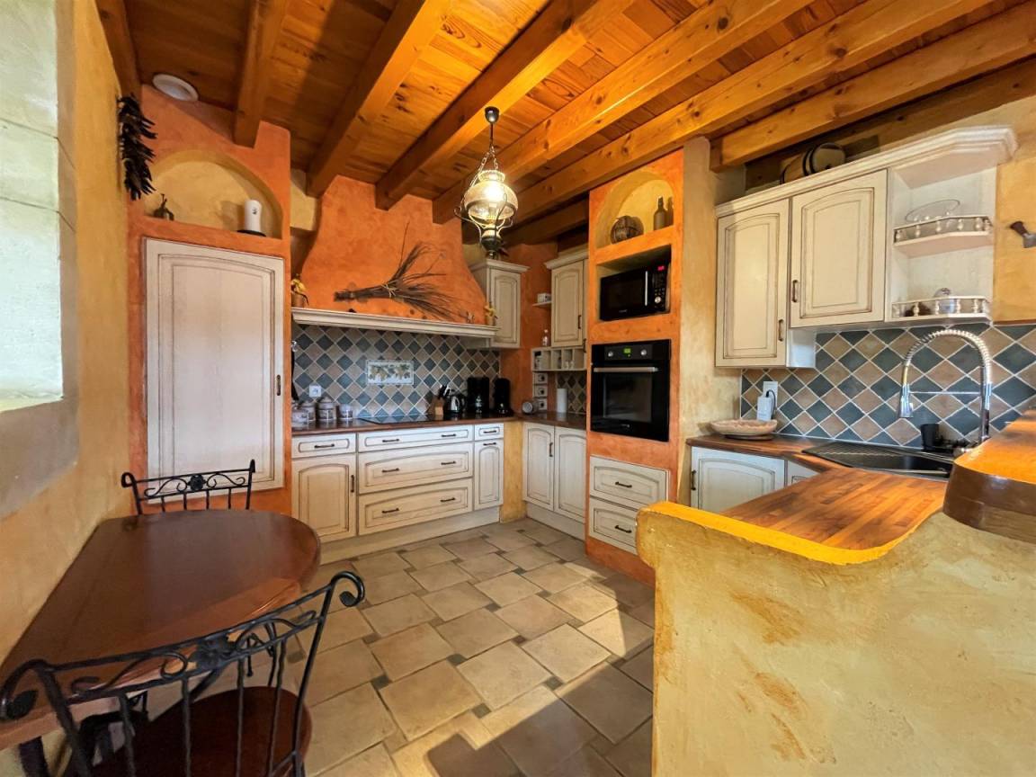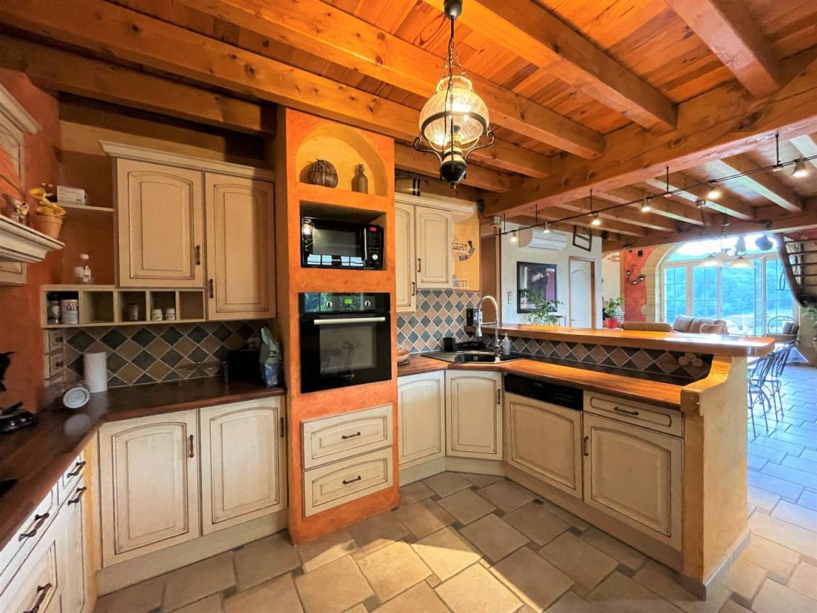 - Küche: Kühlschrank, Geschirrspüler, Backofen und Mikrowelle, 3-Flammen-Induktionskochfeld. Essbereich.