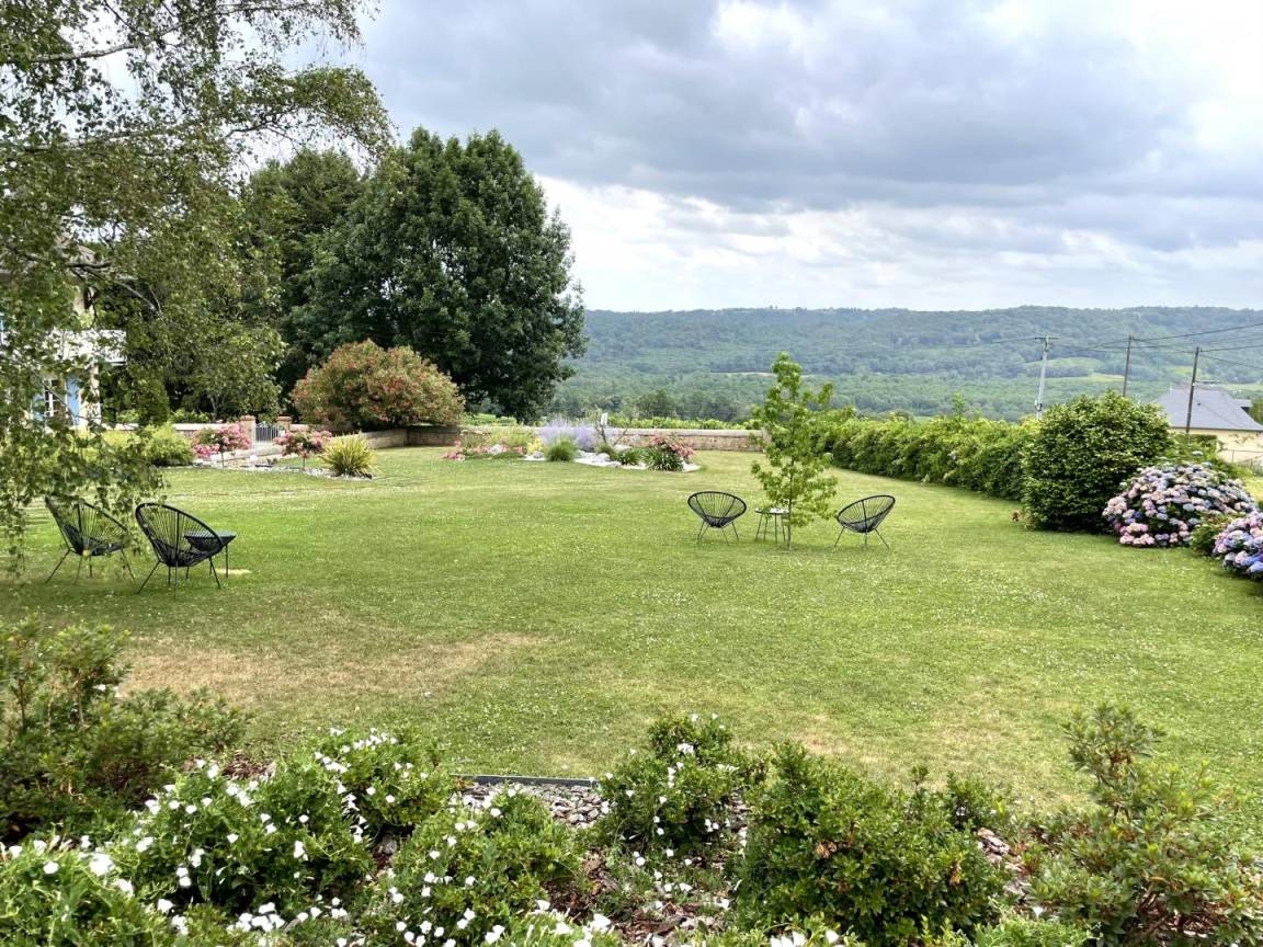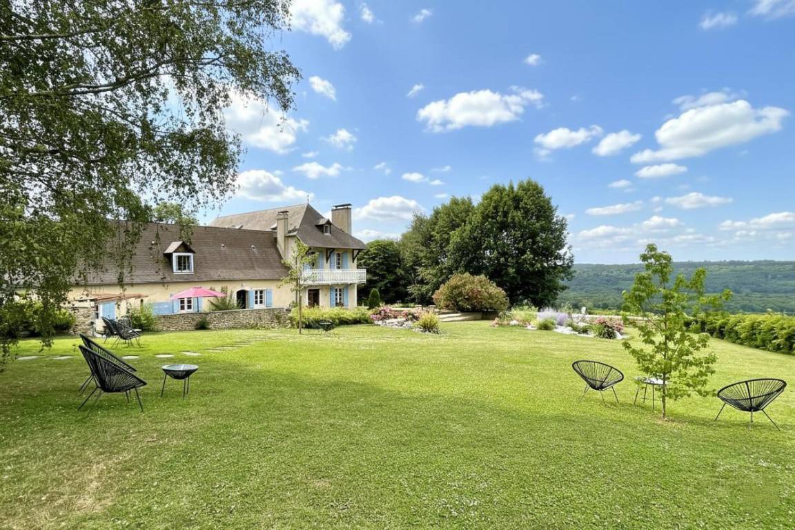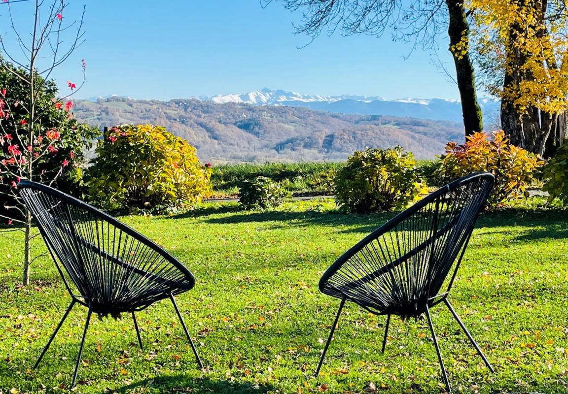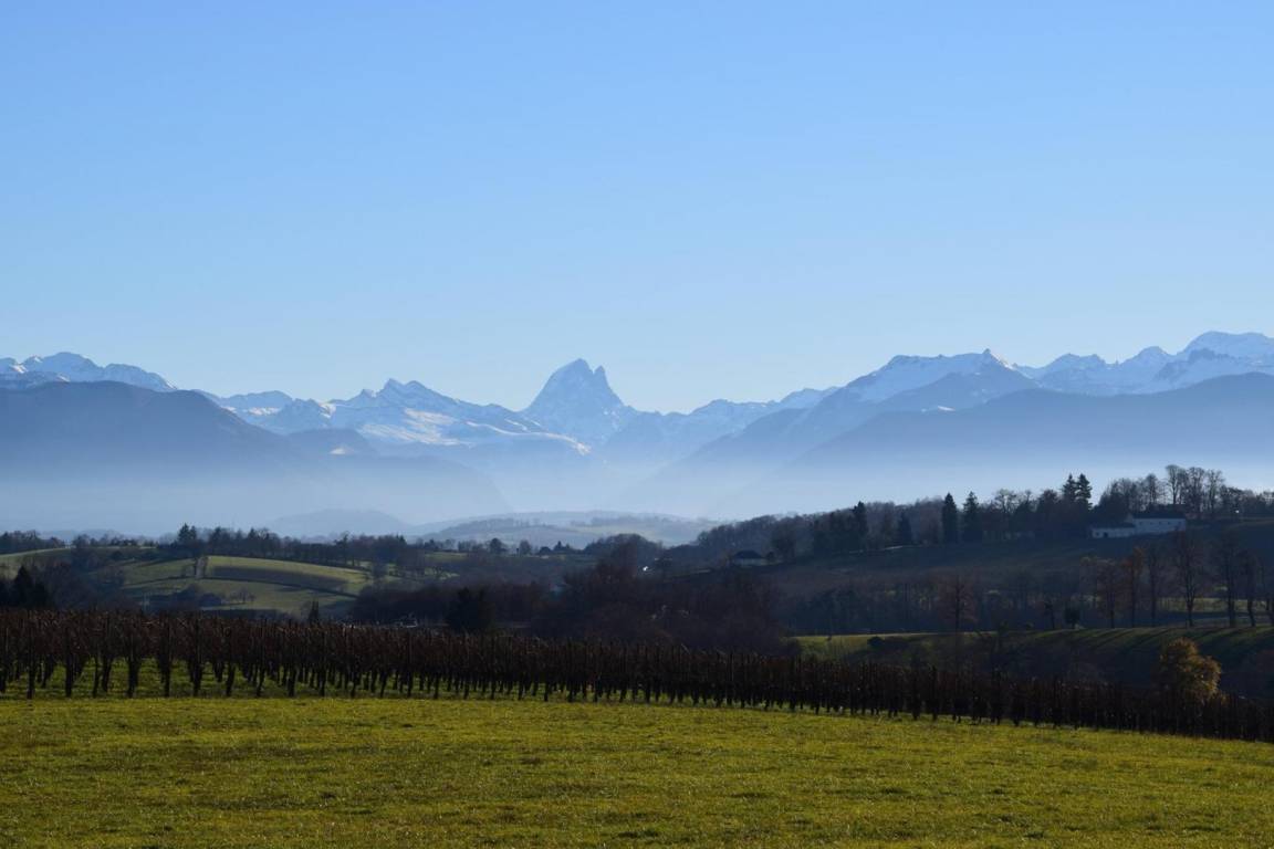 „De Monein, une route sinueuse et très belle nous amène au Gîte « les Vignes ». Un parking privatif est à notre disposition. Nous voilà arrivés devant une authentique maison pyrénéenne qui a beaucoup de charme. Sûr que le bruit ne nous dérangera pas !...En face de nous, d'un côté, une vallée superbe...une écharpe de nuages la rend mystérieuse...Un lever de soleil devrait faire le bonheur d'un photographe...Ce le fut !. De l'autre côté, au loin, à l'horizon, les cimes neigeuses des Pyrénées. Le gîte est une annexe de, la maison principale, très bien aménagé, rien ne manque. (cf commentaires précédents) Mme Nousty, discrète et bienveillante, s'inquiète lorsque nous la croisons, de notre bien être...Tout va bien !Nous avons passé une très bonne semaine. Hélas, la météo fraîche du mois de mai ne nous a pas permis de tester la grande piscine. Nous avons apprécié le Jurançon produit par les propriétaires...Et nos amis aussi !...Avec modération bien sûr :-) …Une caresse à Rolex, beagle bionique avec son collier GPS, qui a sympathisé avec notre golden retriever..Nous recommandons grandement ce gîte.“