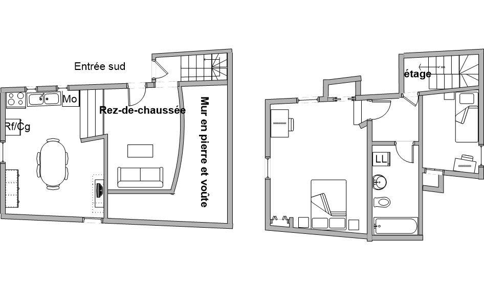 Erdgeschoss: große Küche offen bleiben mit Klick - Klack 2 Sitze. Stock: ein Schlafzimmer mit Bett 140cm, doppelte ein kleines Schlafzimmer mit einem Einzelbett 90 cm, Badezimmer mit wc. Elektrische Heizung.