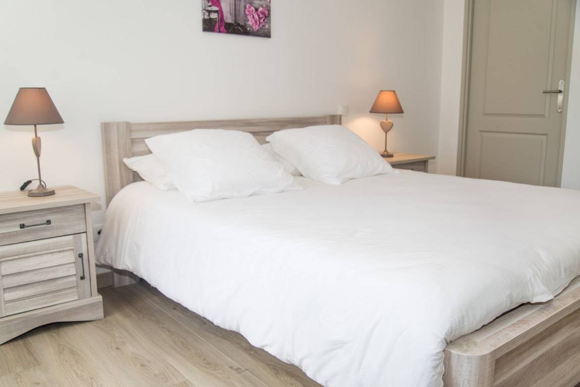 „Séjour excellent dans un très beau gîte, très confortable, parfaitement équipé, et pratiquement neuf, dans un environnement très agréable. un petit bémol: Un portique avec balançoires et un petit toboggan seraient bienvenus pour les enfants. l'isolation phonique entre le gîte au dessus (B) et la grande chambre du A laisse parfois à désirer, (musique, st déplacements de meubles)“