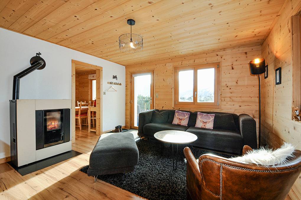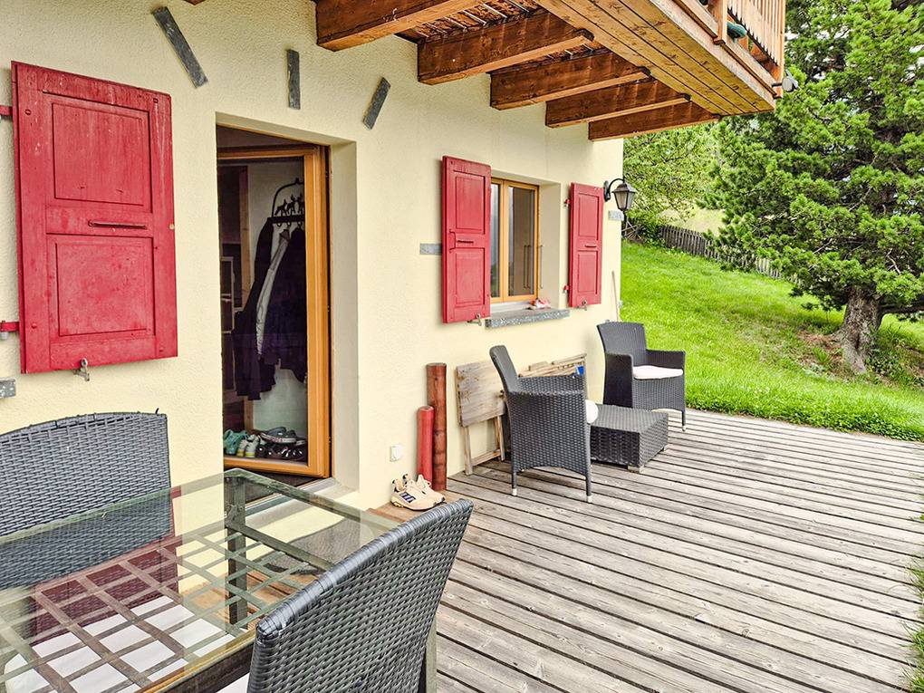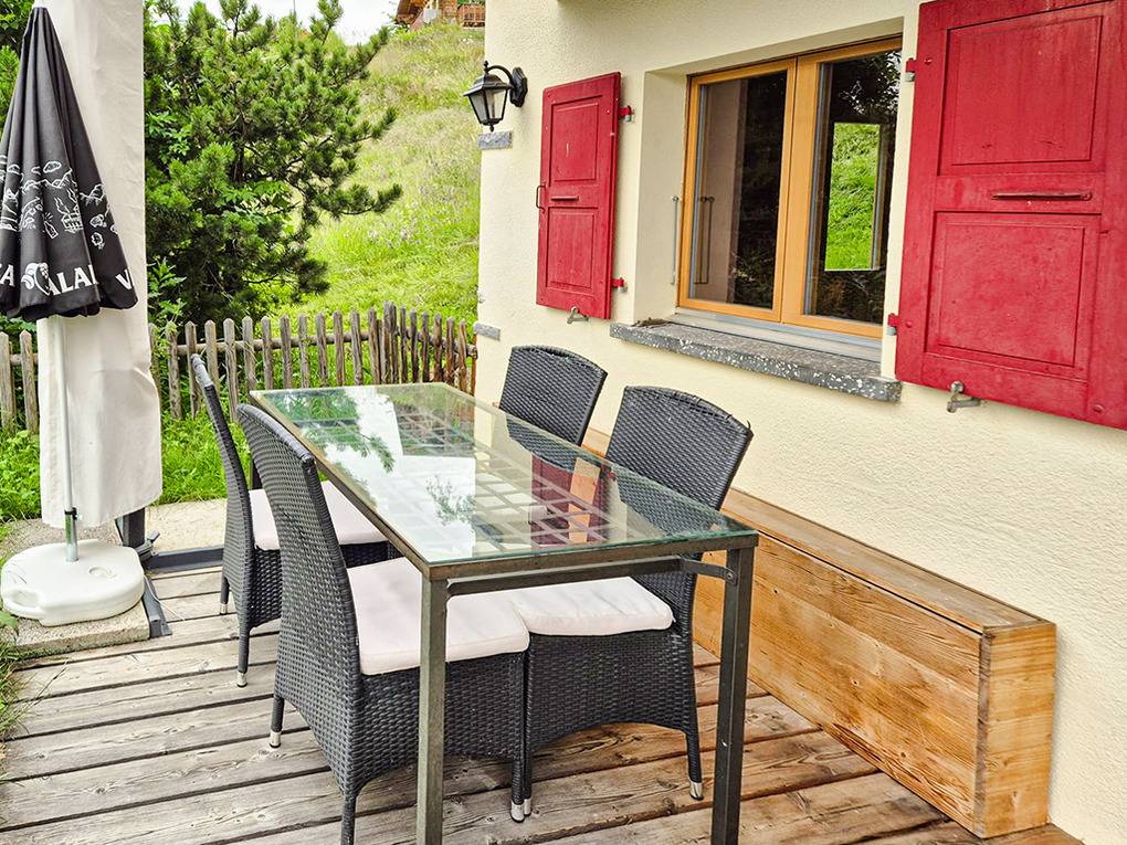 Haus: Schönes Walliser Chalet mit Kaminofen. Traditionelles 2-Familien-Chalet, 2023 aufwendig renoviert, die untere Wohnung wird vermietet. Gemütliche Chalet-Atmosphäre, moderne Komforteinrichtung. Internetzugang über W-Lan. Heizung über Pellet-Kaminofen, E-Radiatoren. Warmwasser über 150 l E-Boiler. Gartenhaus für Ski. 1 Pkw-Stellplatz am Haus.