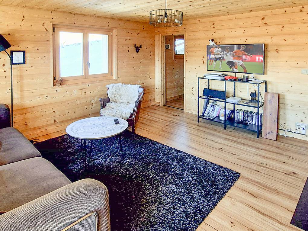 CH 379.20 Wohnung 2-4 Pers.: 3-Zimmerwohnung mit 55 qm Wohnfläche, Parterre. Wohnraum mit Kaminofen, TV, Sofaecke. Küchen-/Essraum mit Esstisch, moderner Küchenzeile (Backofen, Spülmaschine). Doppelzimmer mit franz. Bett. 2-Bettzimmer mit Etagenbett. Bad: Du, Wb, WC.