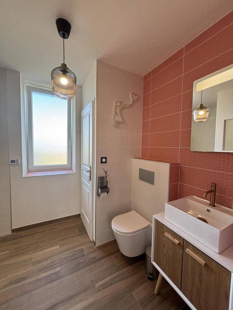 Erdgeschoss: Wohnzimmer mit 3 Sofas, Küche mit Bar, 2 Schlafzimmer mit zwei Betten von je 90*190 cm, 1 Badezimmer mit Dusche und WC inklusive,