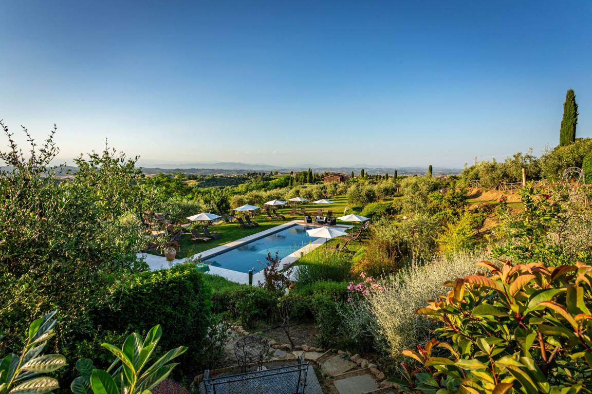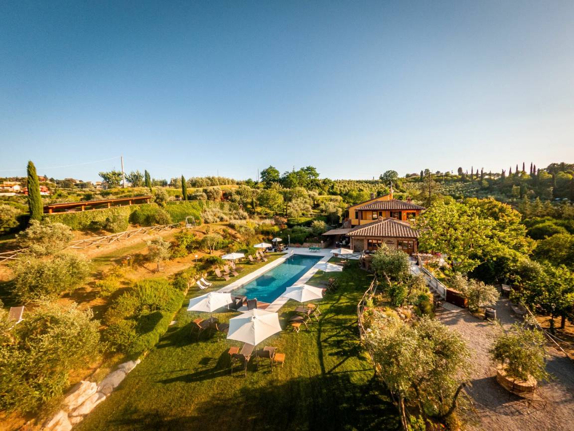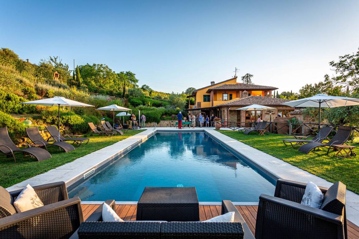 „We are a family of six adults and five children and spent two weeks in april-may 2022 in the six rooms of Villa Amadeo. One of the adults is wheelchair bound. She stayed in the yellow room, which is fully adapted, equipped with a hospital bed and a shower wheelchair. No obstacles. A swimming-pool elevator and a wheelchair lift at the entrance made her stay as relaxing as possible. It was very apparent that the owners wanted very much to learn from our experiences. Any small problems we encountered were solved almost instantly. We all, but especially the children, enjoyed the swimming pool very much. As well as Andrea's pizza party! The house and garden are a showcase of creativity and good taste. Every day we heard and saw bee-eaters, nightingales, serins, warblers and many other birds. The mesmerizing villages and scenery of Tuscany did the rest. We had a wonderful time.“