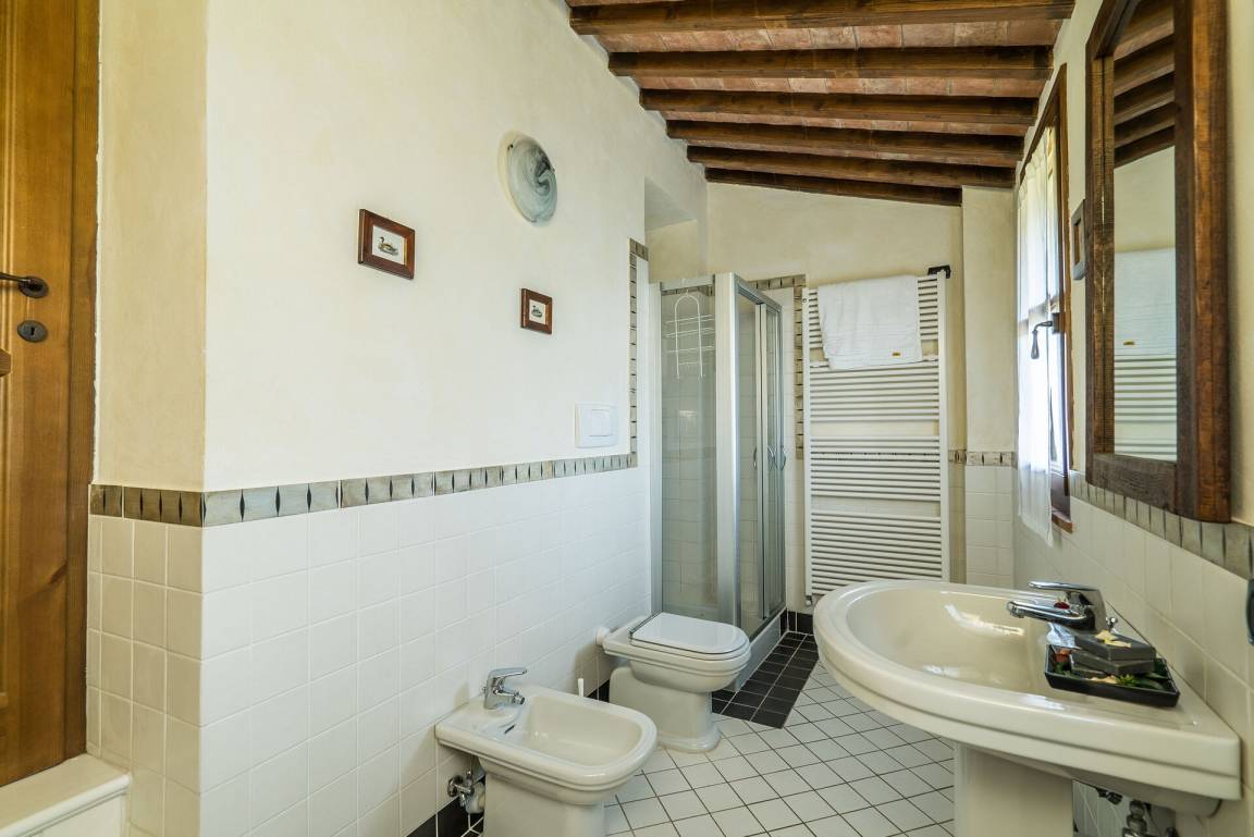 Badezimmer 3: Waschbecken, WC, Bidet, Dusche.