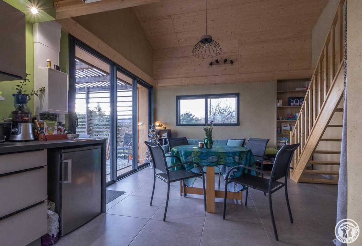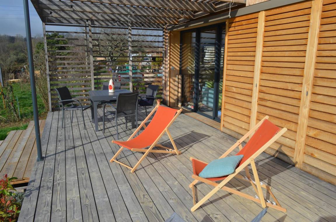 „Agréable découverte d'une maison bioclimatique qui reste fraîche malgré la température extérieure (30°).La maison est fonctionnelle, confortable et aménagée avec goût. La grande terrasse et la vue depuis celle-ci sont top. L'environnement est calme, vous pourrez observer plusieurs espèces d'oiseaux: Hupe, petit duc ou rapaces entre autre. Il y a beaucoup à découvrir et à visiter aux alentours. Fred et Christina nous ont parfaitement accueilli et ont pris le temps de nous expliquer le fonctionnement de la maison et des différents appareils.“
