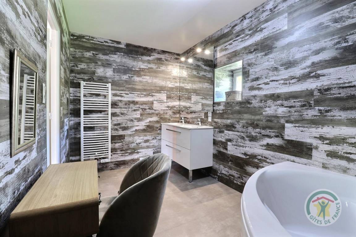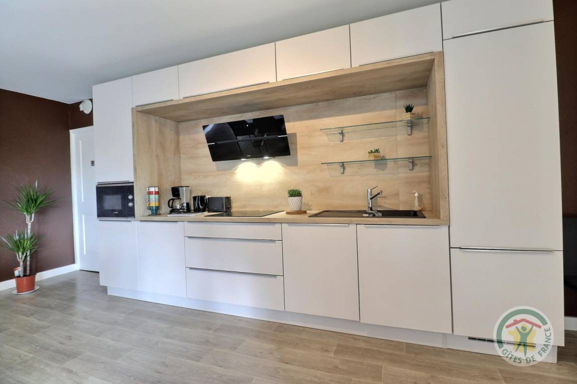 „Très bon accueil de la propriétaire, un feu dans la cheminée et un sapin de Noël nous attendaient. Très belle salle de séjour, une grande chambre avec belle salle de bain. Grand terrain, sympa quand on a un animal. Le gîte donne sur la nationale 12 qui affiche une forte circulation mais cela ne nous a pas dérangé car compte tenu de la saison nous étions en intérieure.“