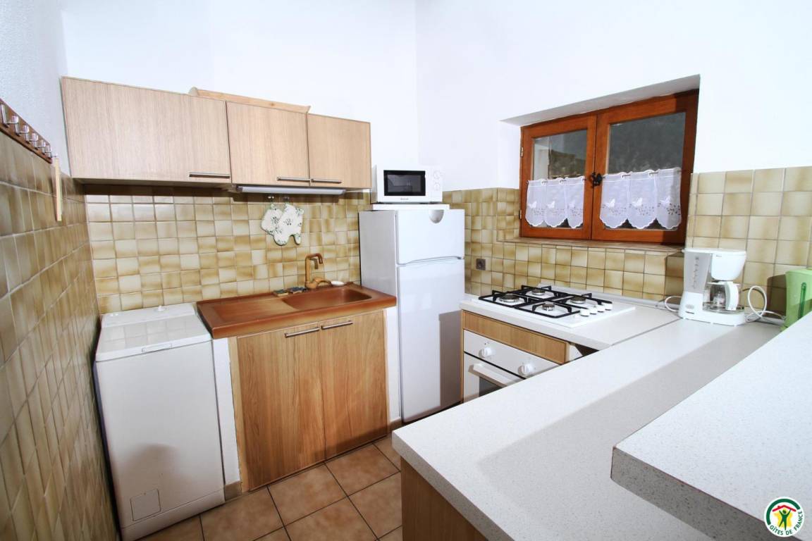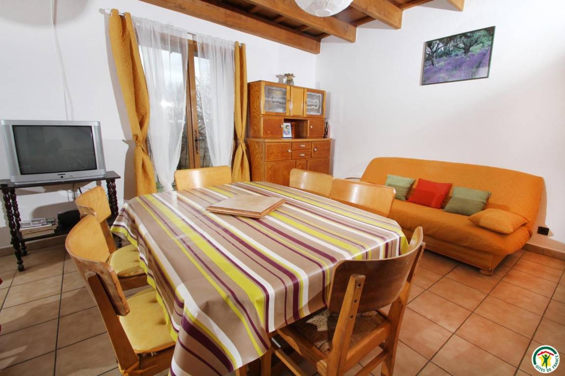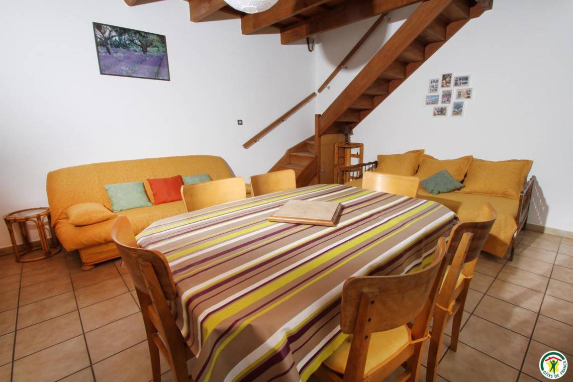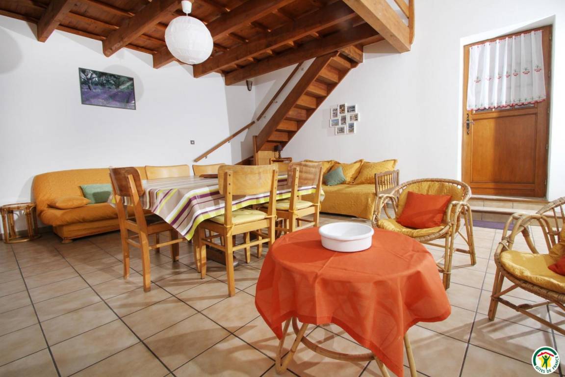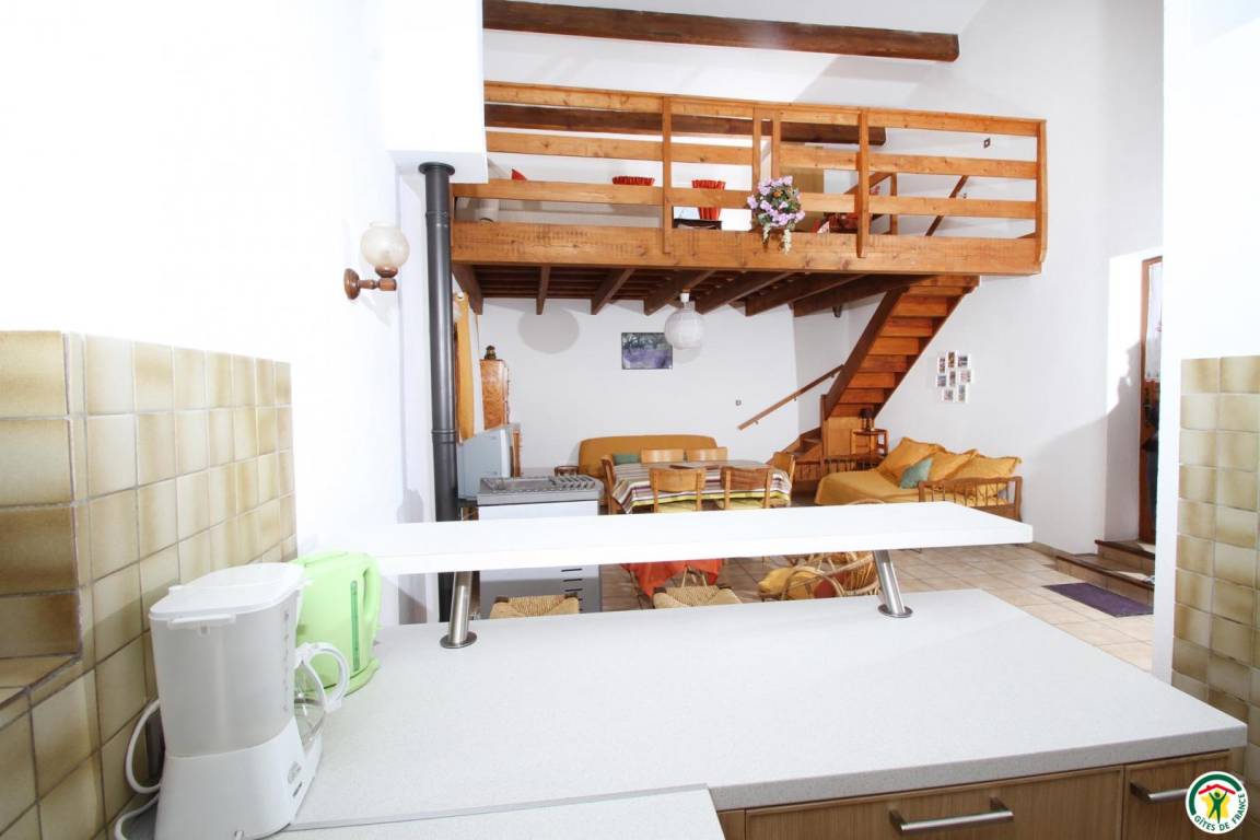 Erdgeschoss: Küchenzeile, Wohnraum und Sitzecke (Schlafsofa), Bad mit Dusche, WC. Zwischengeschoss: 1 Bett 140 cm. Pelletofen. Das Thermalbad Montbrun-les-Bains liegt 25 km entfernt.