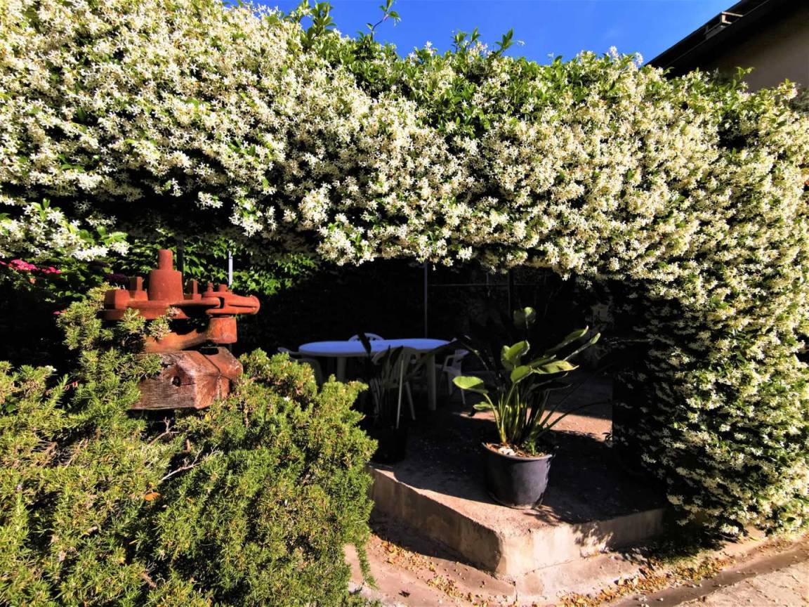 „Hohe Räume, die bei den warmen Tempreraturen sehr angenehm waren. Toll war auch die Unterstellmöglichkeit für das Auto. Schöne Rückzugsmöglichkeit im wunderbaren Garten.“