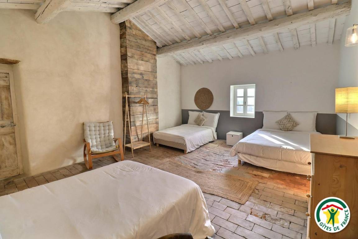 Das Le Mas Constantin erstreckt sich über zwei Ebenen und entfaltet sich mit zahlreichen Stufen und zwei Treppen, die den Raum dezent strukturieren. Beim Betreten fühlt man sich wie in einer intimen Oase. Die rund zehn geräumigen und durchdacht gestalteten Zimmer schaffen ein warmes und modernes Ambiente. Im Erdgeschoss: Wohnküche, Lounge, Coworking-Bereich, Schlafzimmer (180x200 cm Bett, Dusche, WC). Im Obergeschoss: 6 klimatisierte Schlafzimmer (180x200 cm Bett, Badewanne, Ankleidezimmer), (160x200 cm Bett), (3x90x200 cm Betten, darunter 1 Etagenbett), (2x140x190 cm Betten, 130x190 cm Bett), (140x190 cm Schlafsofa, Dusche, WC), (140x190 cm Schlafsofa, Spielzimmer), Duschbad/WC. Draußen, nur für Sie: ein 180 m² großer, umzäunter Innenhof, der zu entspannenden Momenten einlädt, eine Terrasse mit Pergola, Grill, Parkplatz, ein nicht eingezäunter Bereich, ein Kinderspielplatz, eine Boulebahn, Darts, ein Swimmingpool, der Abkühlung unter der provenzalischen Sonne verspricht