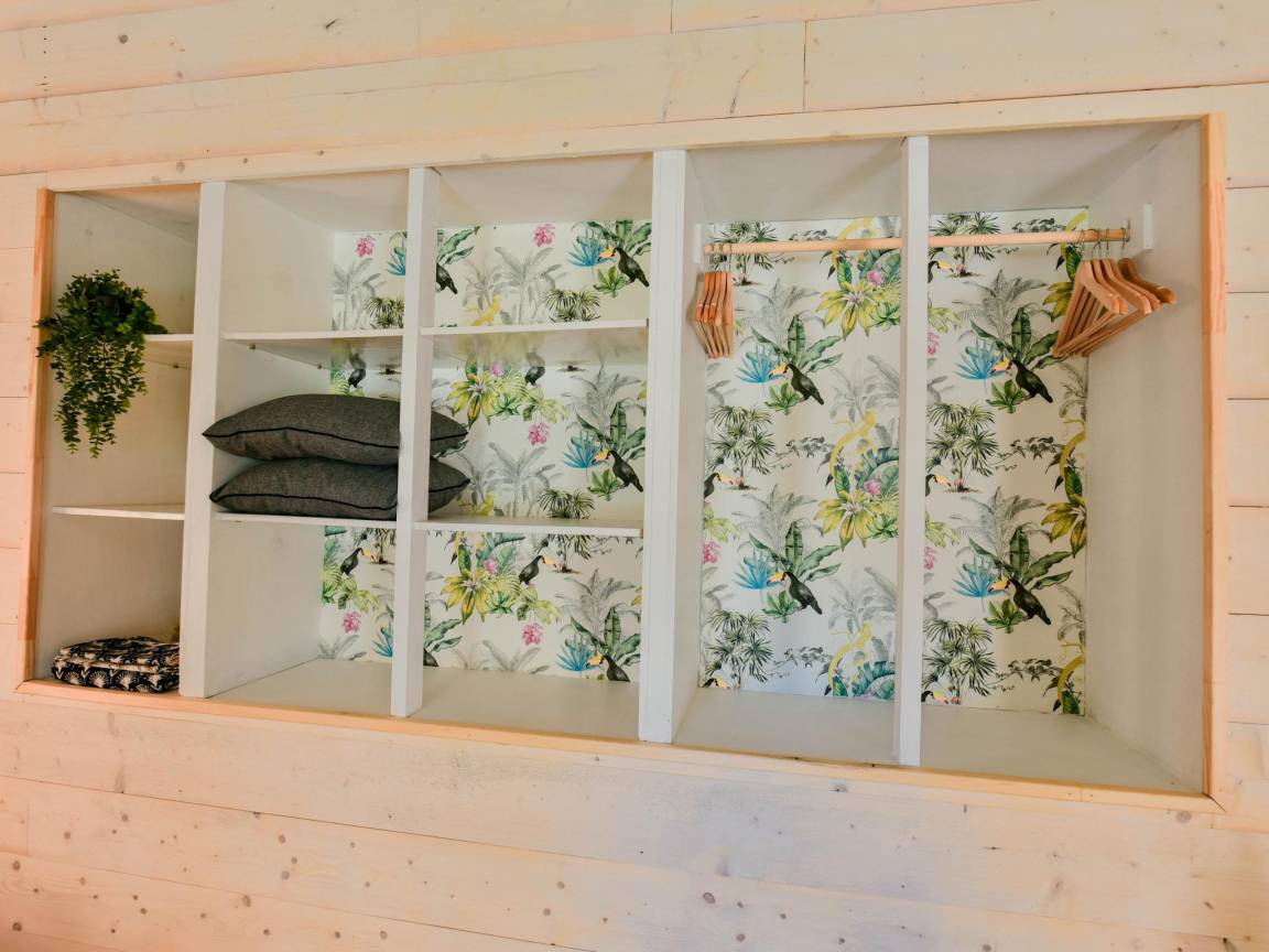 Layout : Parterre: Schlafzimmer mit Doppelbett(180 x 200 cm), Fliegengitter, Ventilator , Badezimmer mit Dusche(ebenerdige Dusche), Waschbecken, Toilette , Gartentüren, Terrasse, Liegen, Sonnenschirm
