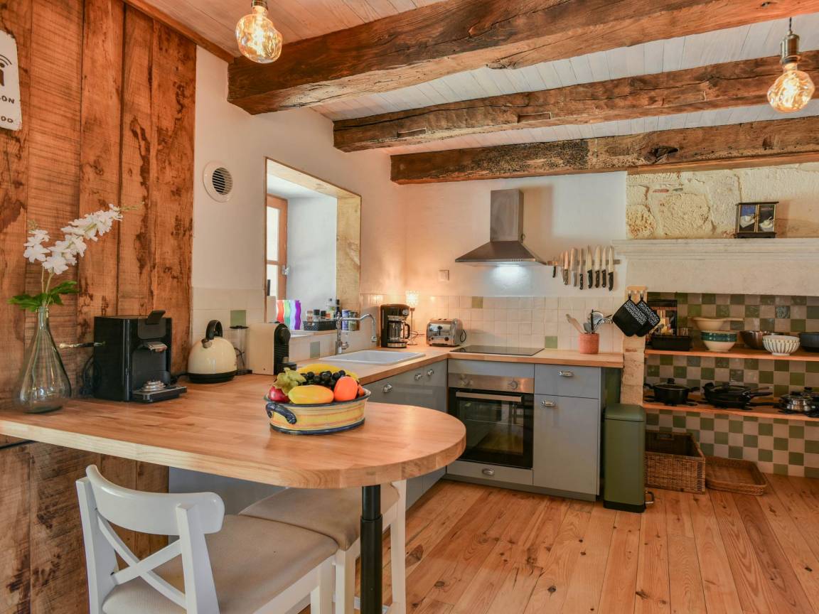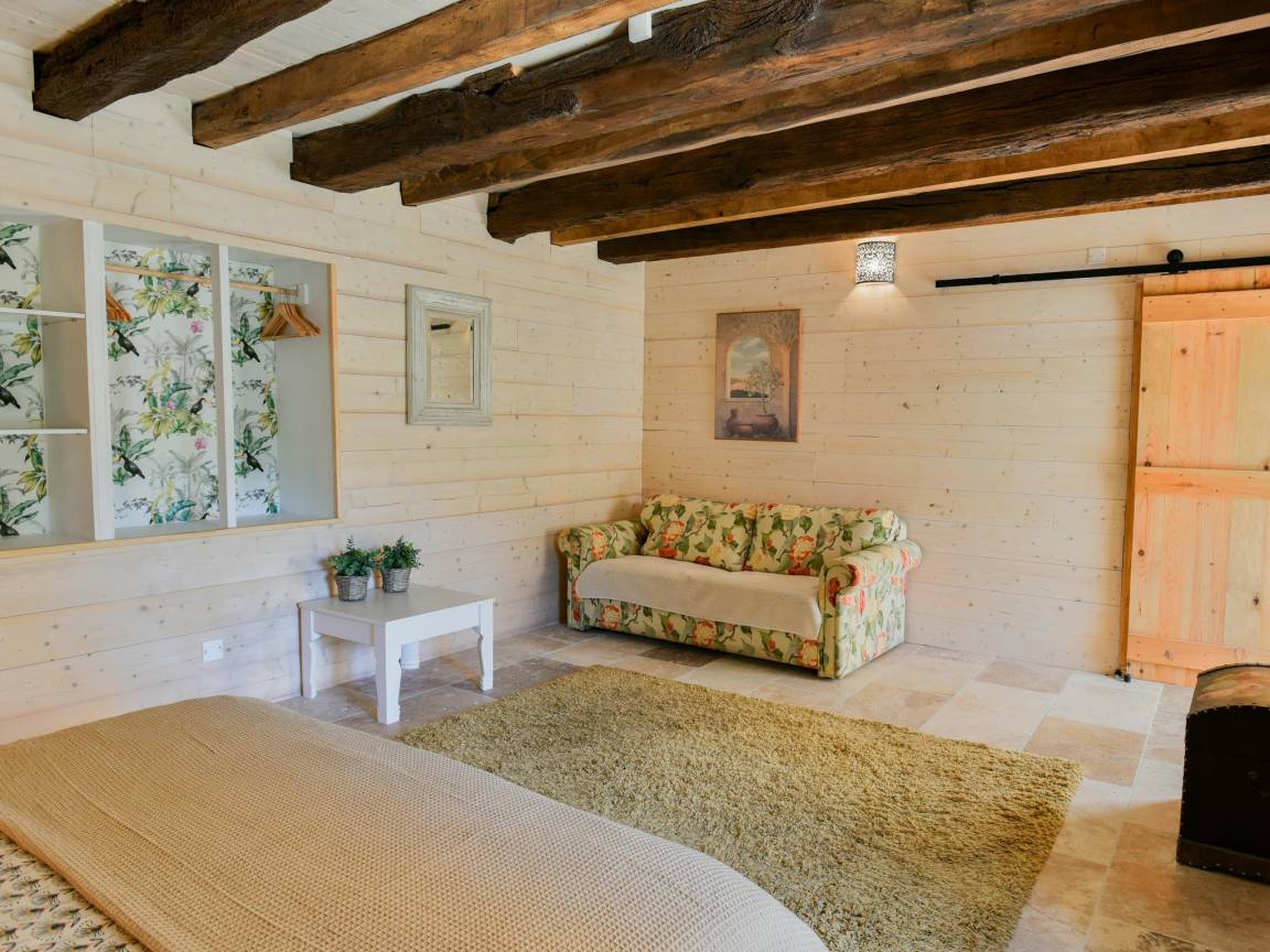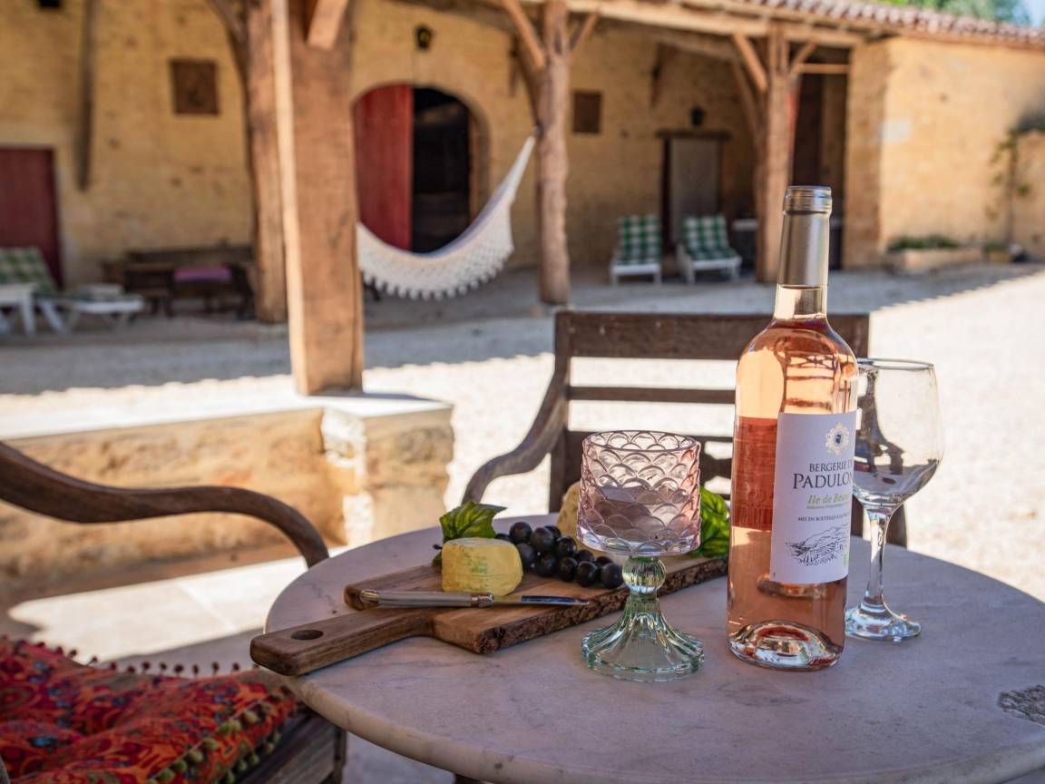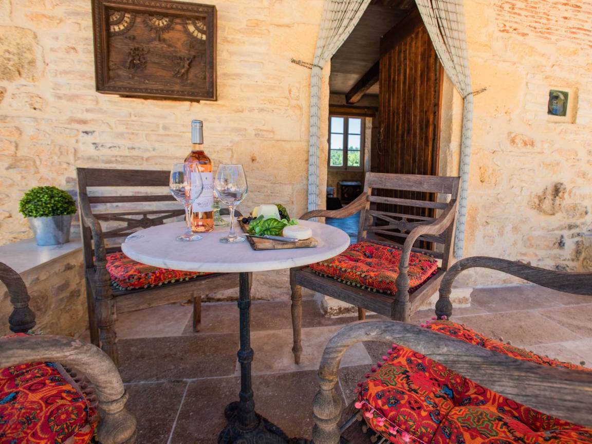 Hausbeschreibung : Der Charme eines alten Bauernhauses mit einem Innenhof und einer großen authentischen Scheune! Vollständig renoviert, unter Beibehaltung des ursprünglichen Charmes. Ein großer Innenhof, mit einer Veranda unter der Scheune mit Whirlpool und einem schönen Sitzbereich. Das Schlafzimmer im Erdgeschoss ist herrlich kühl und hat eine Flügeltür, die auf die hintere Terrasse mit Liegestühlen und Sonnenschirmen führt. Wegen der Lage am Hang ist die Unterkunft nicht für Kinder unter 8 Jahren geeignet