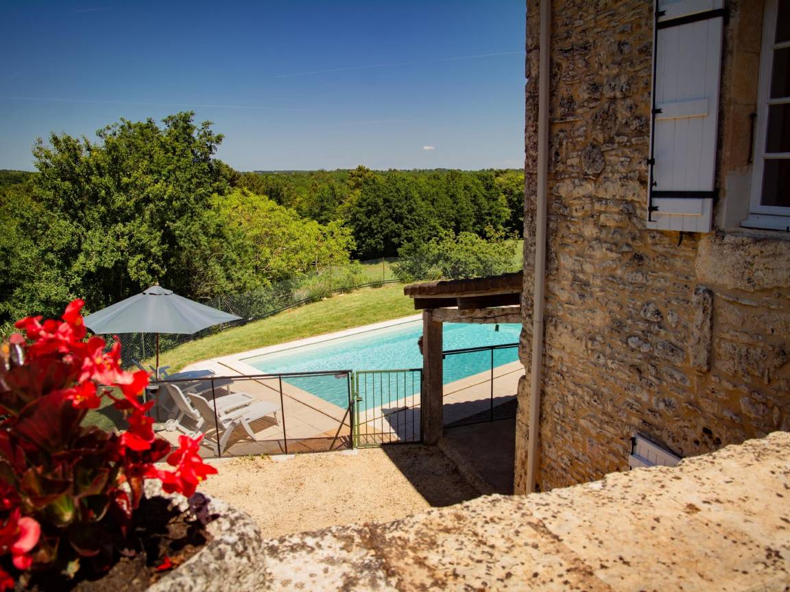 Hausbeschreibung : Das Steinhaus mit privatem Pool befindet sich in schöner Hanglage am Rande der Grenze zwischen Dordogne und Lot in der bezaubernden Region Bouriane. Umgeben von Wäldern, Hügeln, felsigen Klippen und Flüssen können Sie hier entspannen. Die Einrichtung ist einfach und charmant, mit einer gut ausgestatteten Küche. Von der Terrasse aus haben Sie einen Blick auf die für die Region typische Hügellandschaft. Die Ferien können beginnen!