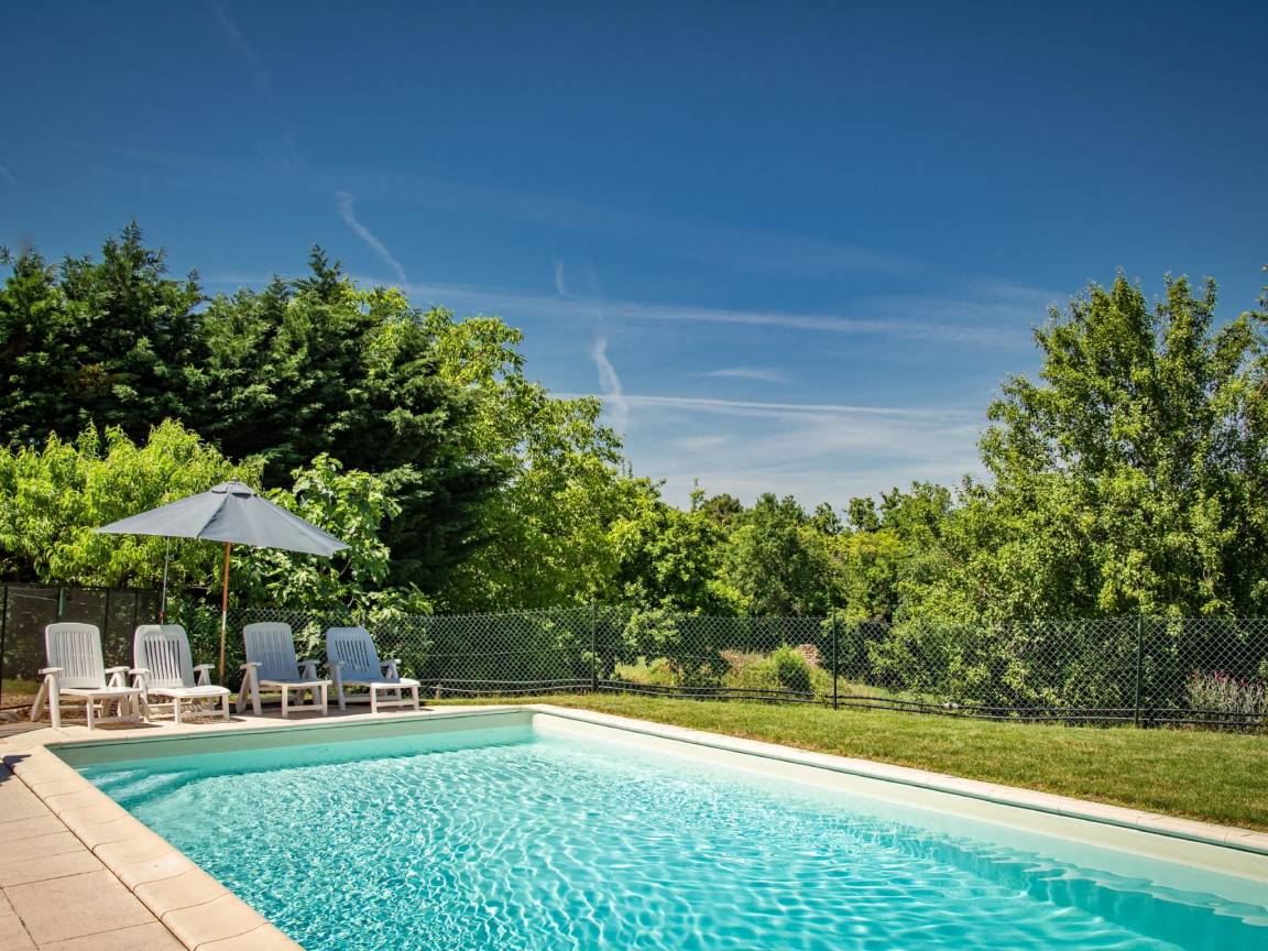 Flur, Waschmaschine, Terrasse, Garten(nicht umzäunt), Gartenmöbel, Liegen, BBQ(Holzkohle), 1x Parkplatz, Pool(alleinige Nutzung, umzäunt, 9 x 5 m., Tiefe: 1.4m, geöffnet von Jun bis einschließlich Sep)
