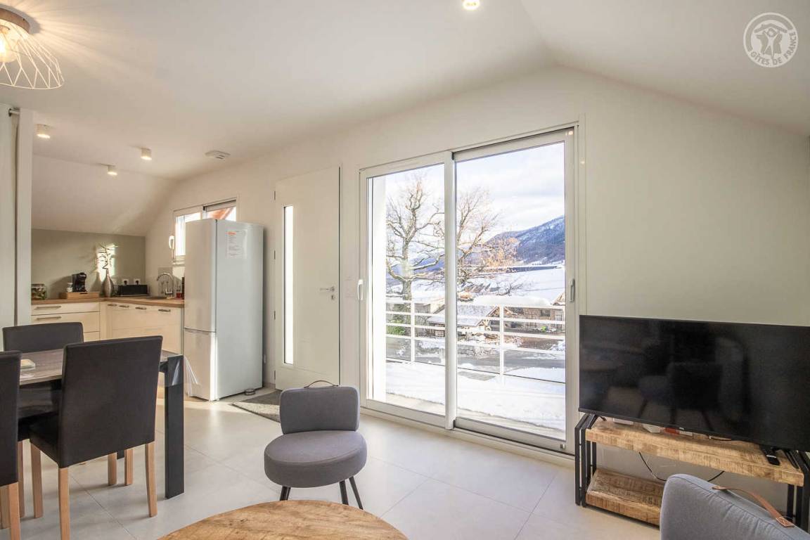 „Un séjour merveilleux avec une vue imprenable sur les montagnes. La décoration est faite avec goût et il y avait tout ce qu'il faut pour cuisiner. Nous recommandons ce gîte ! Si nous devions trouver un bémol, cela serait au niveau de la literie: Le matelas parental était trop ferme à notre goût.“
