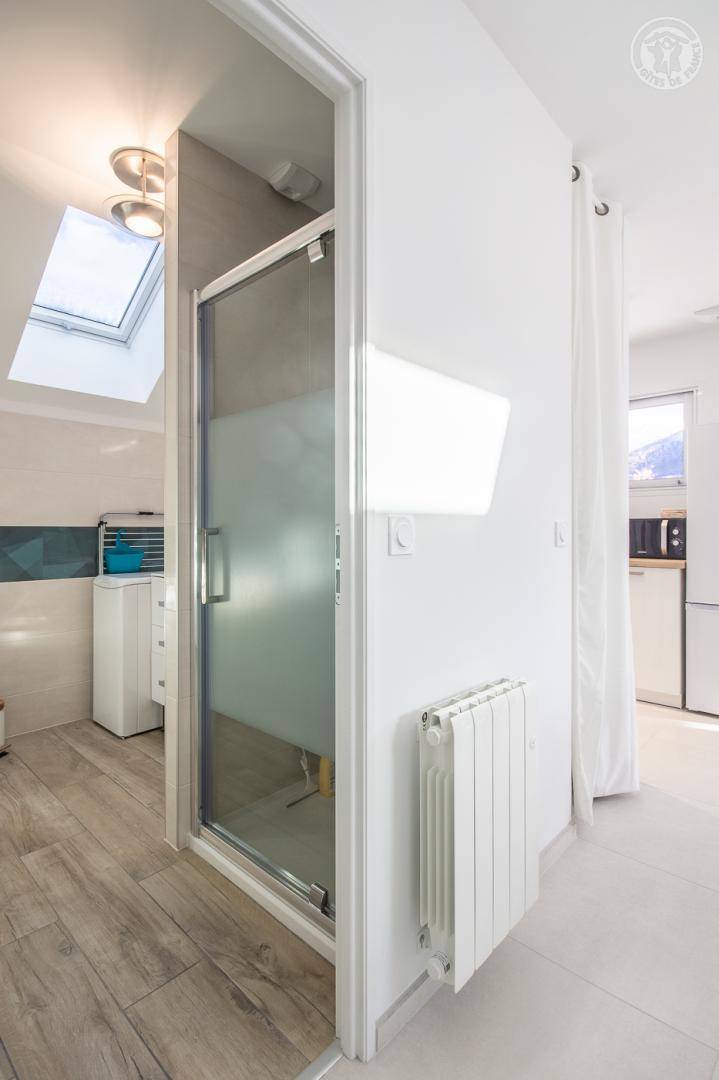 Einfamilienhaus inklusive Häuschen im 1. Stock bestehend aus Wohnzimmer-Küchen-Lounge-Bereich (TV mit HDMI- und USB-Anschlüssen) mit Balkon-Terrasse, 2 Schlafzimmer (1 Doppelbett 140 x 190 cm / 2 Einzelbetten 80 x 200 cm, die sich aufstellen lassen). zu 1 Doppelbett 160 x 200 cm kombinierbar), ein Badezimmer (Dusche) mit WC. Möglichkeit zum Abstellen von Skiern, Fahrrädern oder Dachbox in der privaten Garage des Hausbesitzers. NICHTRAUCHERHAUS.