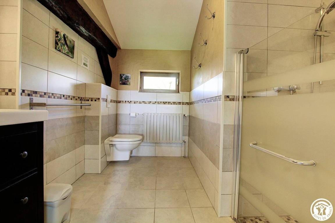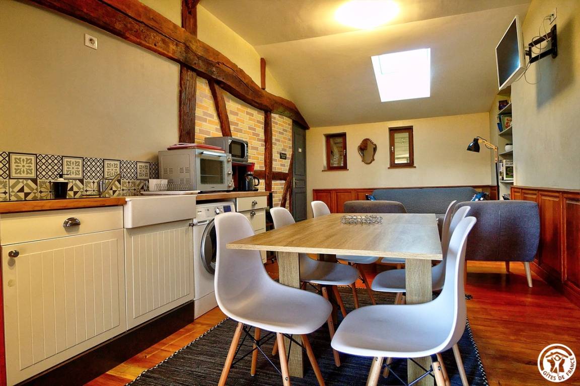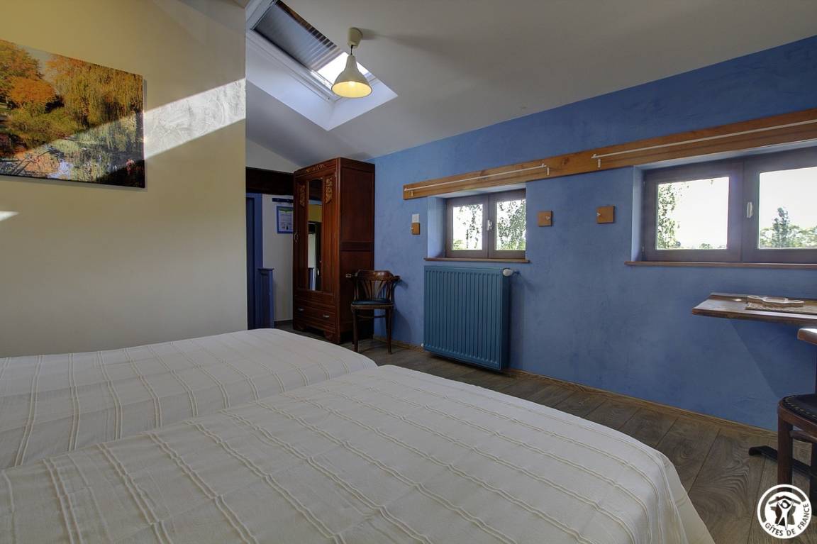 Diese Gîte bietet Platz für sechs Personen. Eine Holztreppe führt direkt zum Essbereich und zum Ruhebereich. Es stehen drei Schlafzimmer zur Verfügung: eines mit einem 160 x 200 cm großen Bett, ein zweites mit einem 180 x 200 cm großen Bett und das letzte mit zwei 90 x 200 cm großen Einzelbetten. Das Besondere an der Gîte: Jedes Schlafzimmer verfügt über ein eigenes Bad mit WC. Die Betten sind bei Ihrer Ankunft bezogen, Handtücher und Heizkosten sind im Preis inbegriffen. Sie können auch den Swimmingpool der Eigentümer (11 x 6 m, maximale Tiefe 2,20 m, mit sanftem Gefälle) nutzen, der nur in den Sommermonaten zugänglich ist, und die Ruhe der Umgebung mit Gartenbereich und Steg auf dem privaten Teich genießen. Nach vorheriger Reservierung bei den Eigentümern und gegen Aufpreis bietet ein norwegisches Bad Platz für bis zu