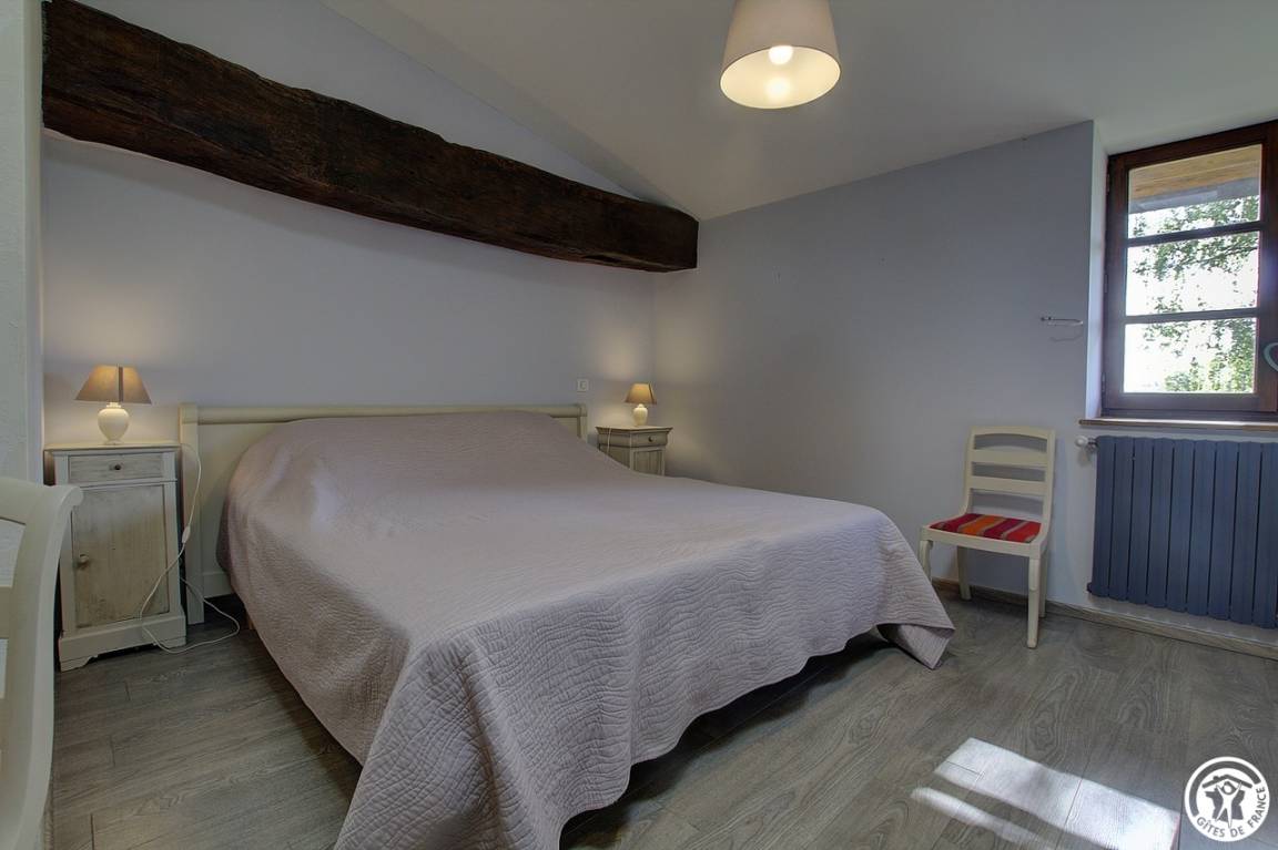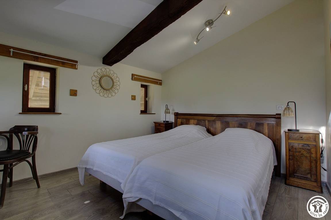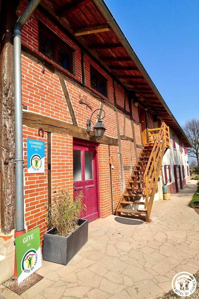 12 km von Bourg-en-Bresse entfernt, inmitten eines bewaldeten und blühenden Parks, befindet sich die Gîte Les Vignes (76 m²) im ersten Stock eines Bresse-Bauernhauses.