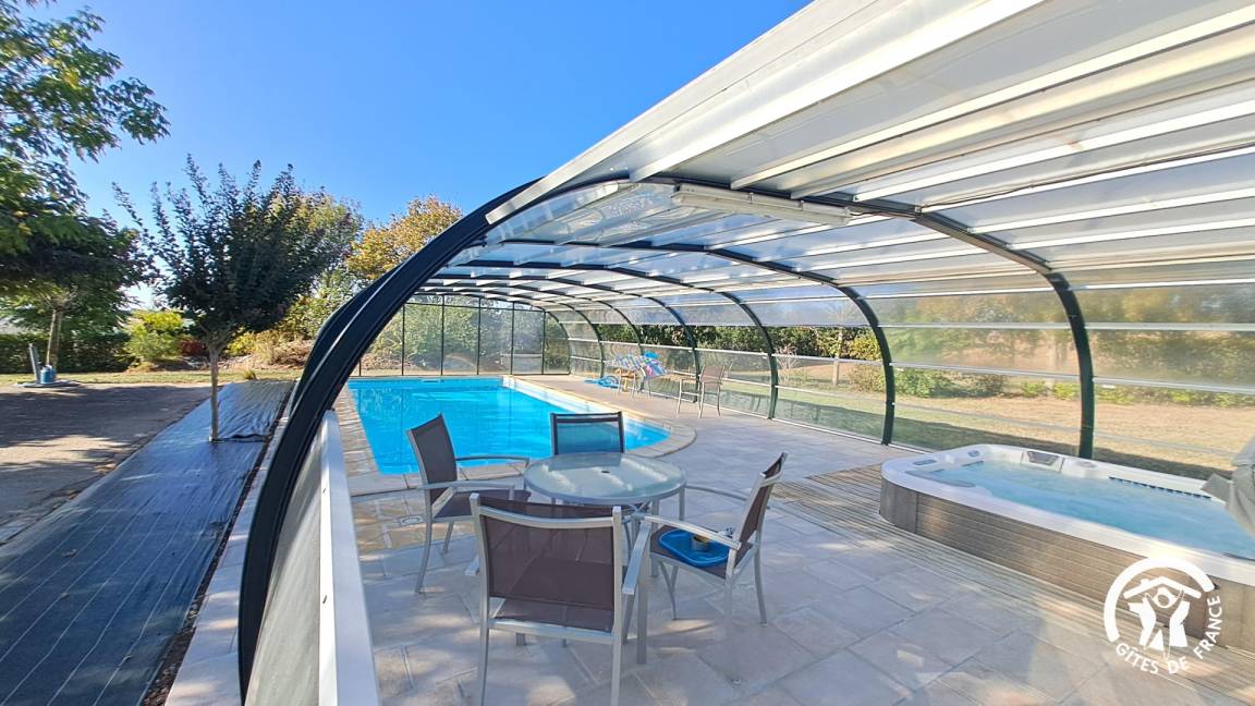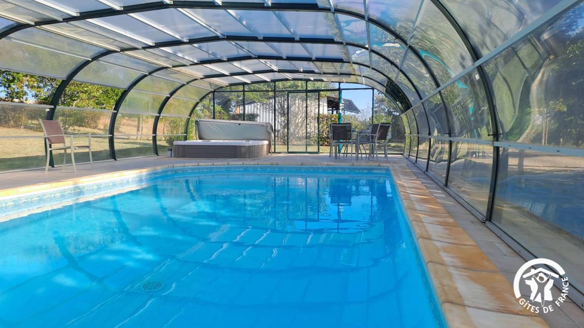 „Séjour très agréable et reposant dans ce gîte isolé, tranquille et sans vis-à-vis. Vaste piscine couverte très agréable et réservée aux locataires du gîte. Accueil très sympathique du propriétaire. Belle région à découvrir.“