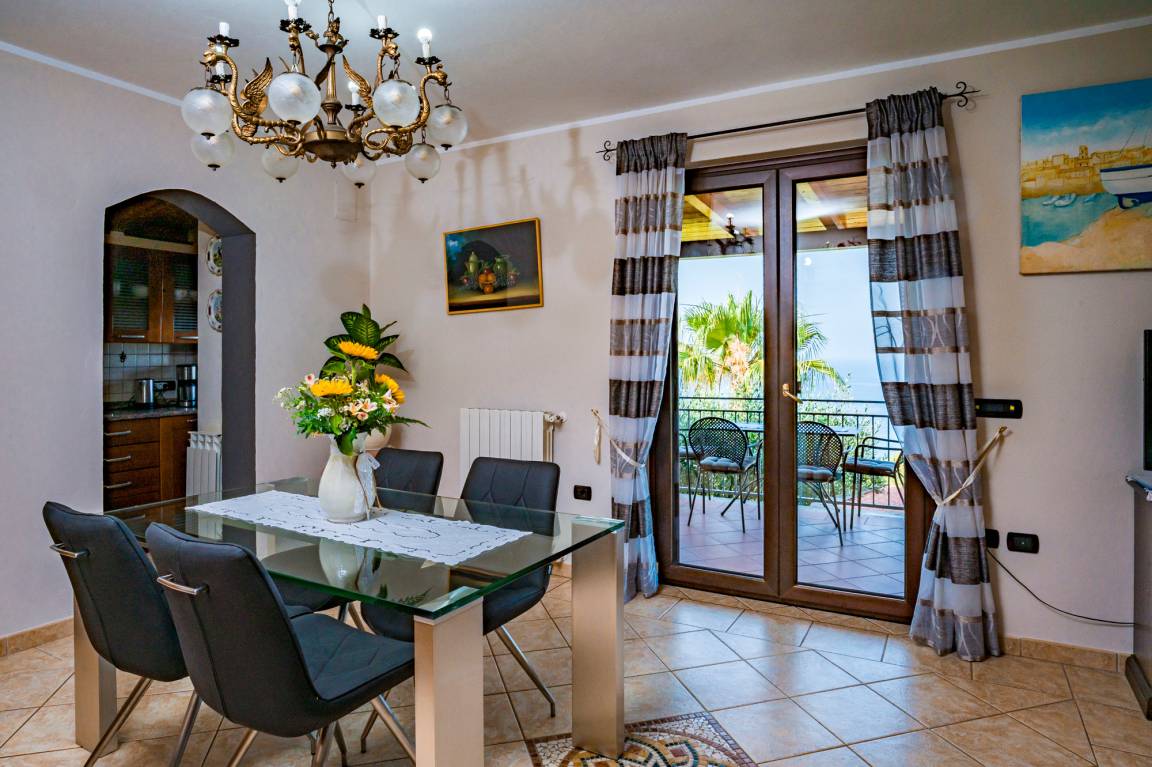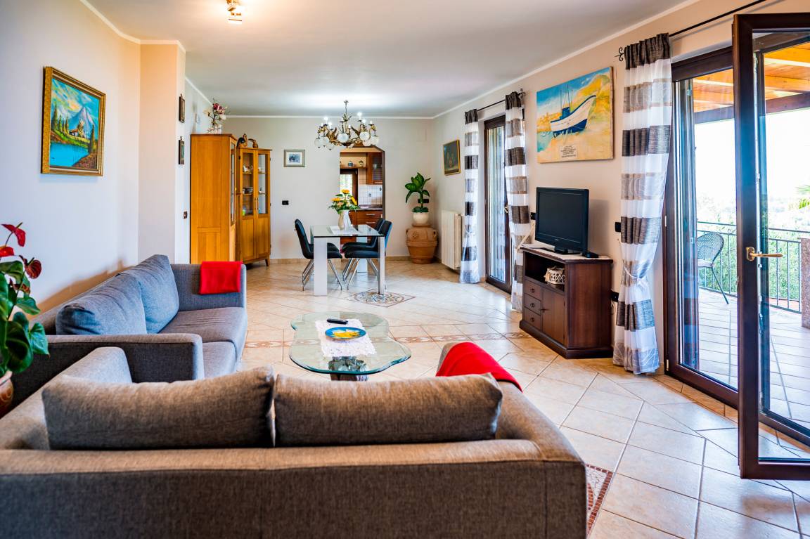 It therefore comes as no surprise that the location of family Lamanna's very well-tended holiday home is rich in panorama. From the roofed terrace in front of the house, your gaze roams far out to sea and to the oldest part of Marina di Camerota, which lies on a striking headland.