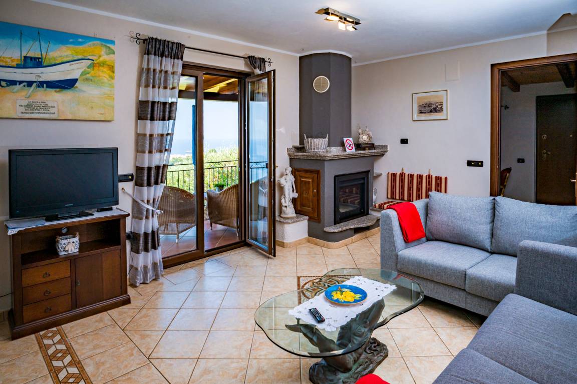 Entsprechend panoramareich ist die Lage des sehr gepflegten Ferienhauses der Familie Lamanna. Von der überdachten Terrasse vor dem Haus reicht der Blick bis weit hinaus auf das Meer und auf den ältesten Ortsteil Marina di Camerotas, der sich auf einer markanten Landzunge erstreckt.