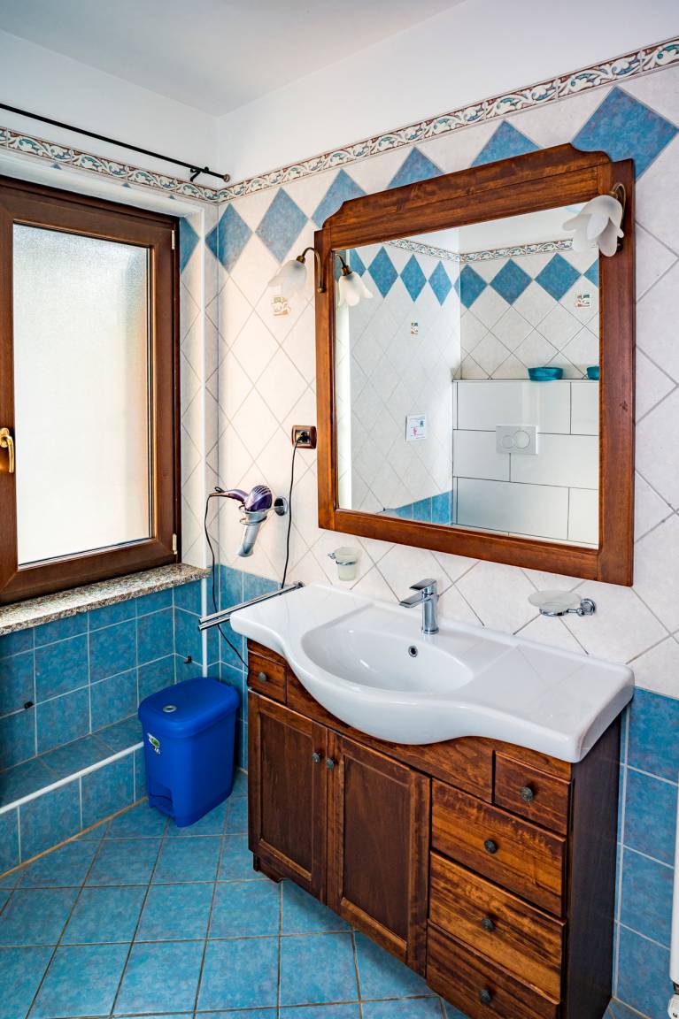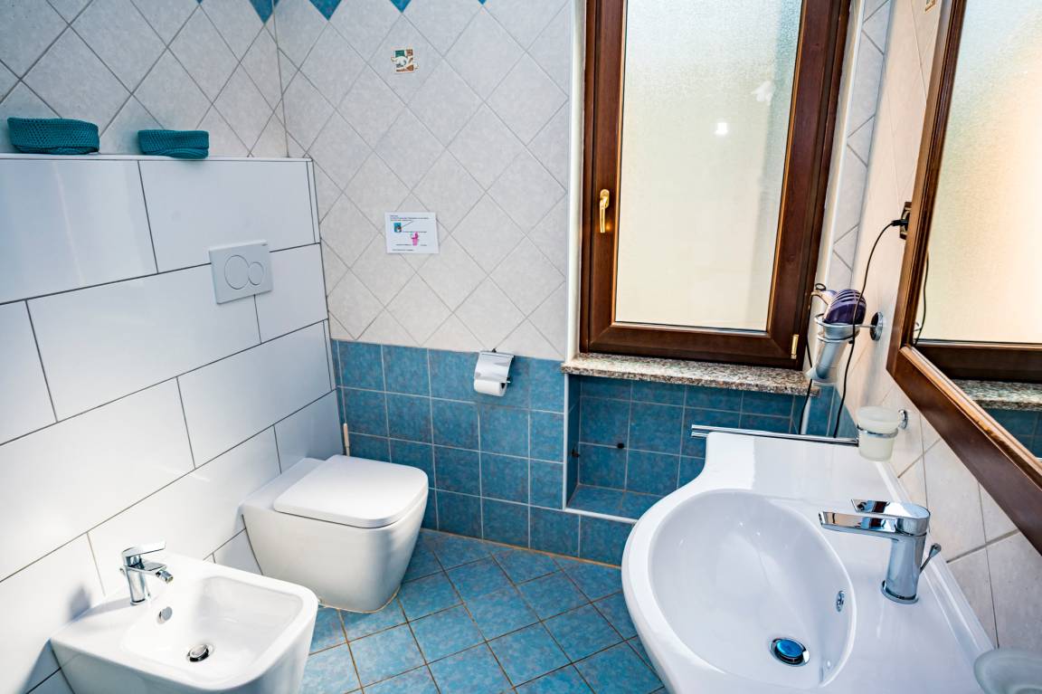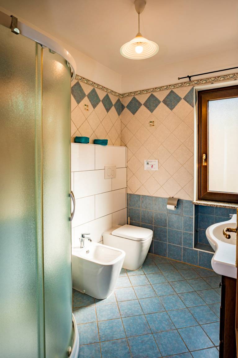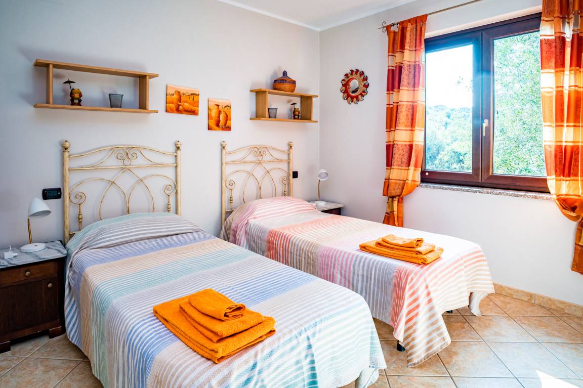 The two bedrooms (double bed; twin beds) and the bathroom (shower/WC/bidet; hair dryer) are found in the back part of Villa Solento.