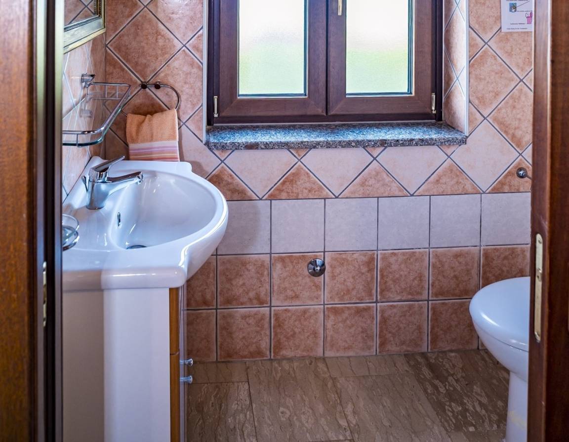 Im hinteren Teil der Villa Solento befinden sich die zwei Schlafzimmer (Doppelbett; 2 Einzelbetten) sowie das Bad. Ein Gäste-WC ist im Eingangsbereich des Hauses zu finden.
