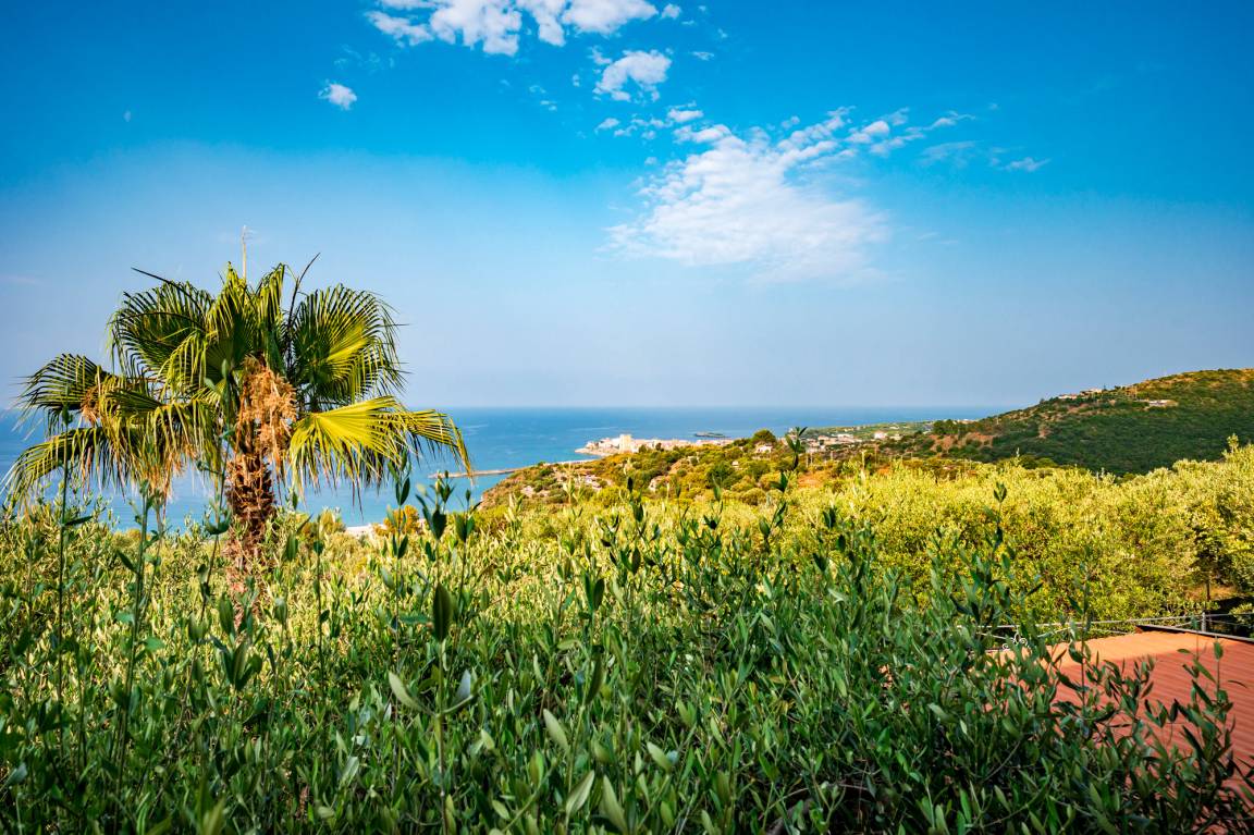In wunderschöner Panoramalage, idyllisch zwischen Oliven- und Granatapfelbäumen liegt die Villa Solento an den Hängen des Monte di Luna in Marina di Camerota.
