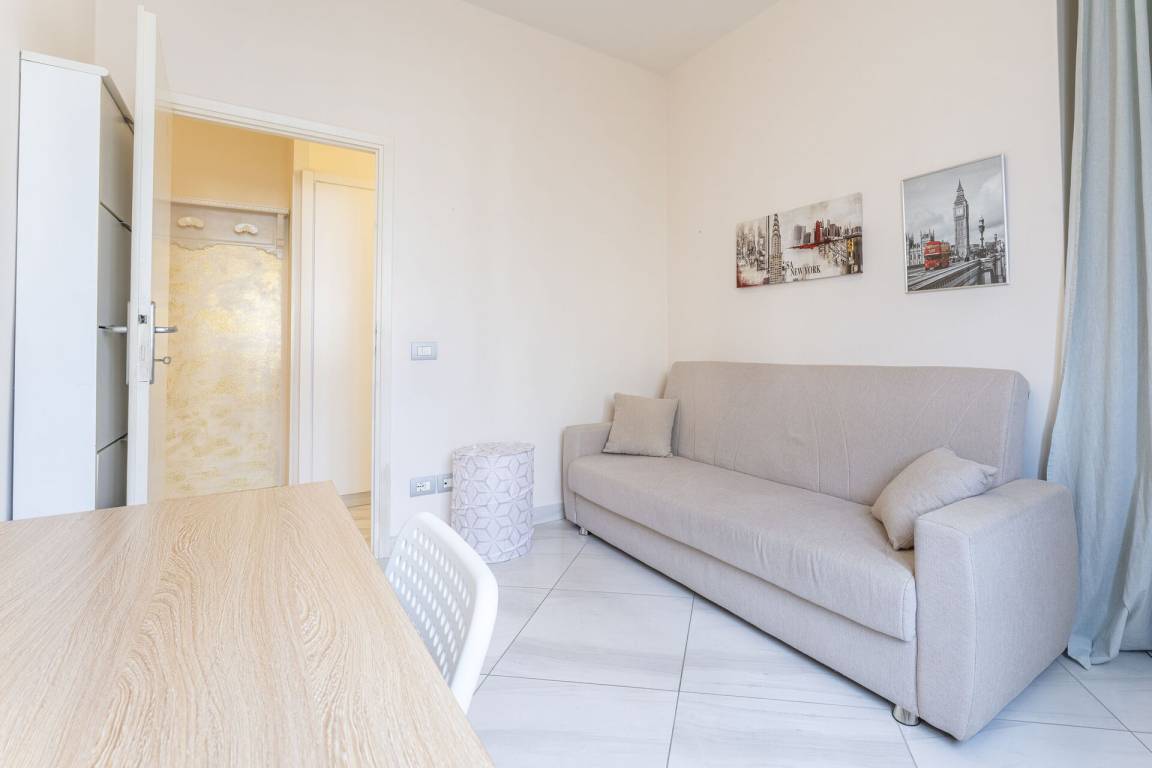 Wohnküche: gut ausgestattete Küche, Esstisch, Kühlschrank, Tiefkühler, Mikrowelle, Ofen, Italienische Kaffeemaschine, Sofa, WiFi Internet, Klimaanlage, TV, Ausgang auf den Balkon.