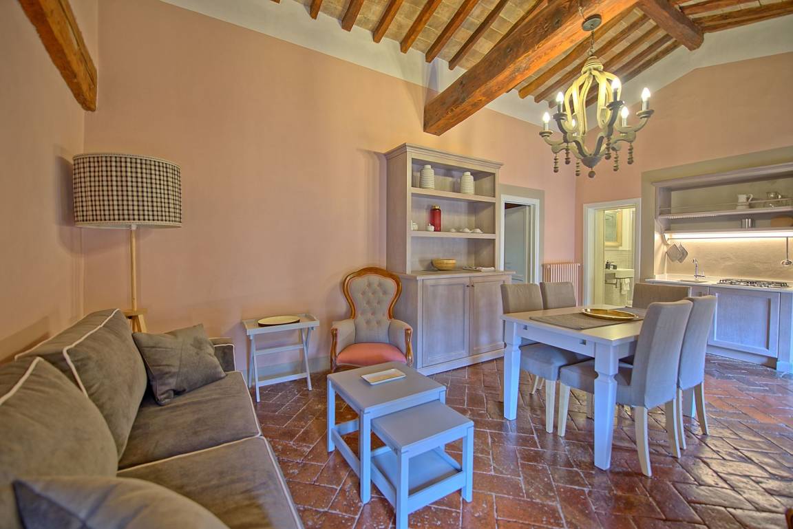 2.Stock: Kleiner Eingang, helles Wohnzimmer mit Essbereich, Küchenecke und Einzelbettcouch, 2 Doppelzimmer mit Ehebett, Bad mit Dusche.