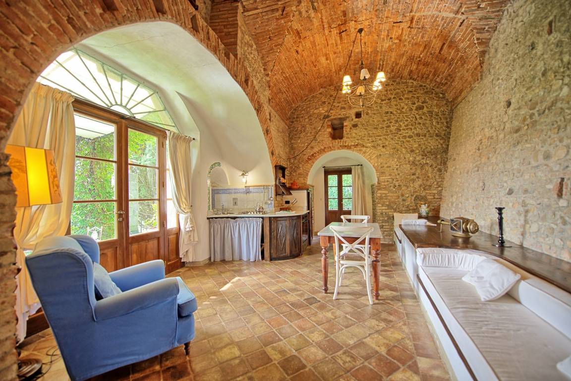 Charakteristische Wohnung aus der Renovierung eines antiken Turms (13. Jahrhundert) des Schlosses Montegufoni entstanden. Die Wohnung befindet sich in einem abgelegenen Teil des Schlosses und verfügt über einen privaten Teil des Gartens und über einen privaten Eingang.
