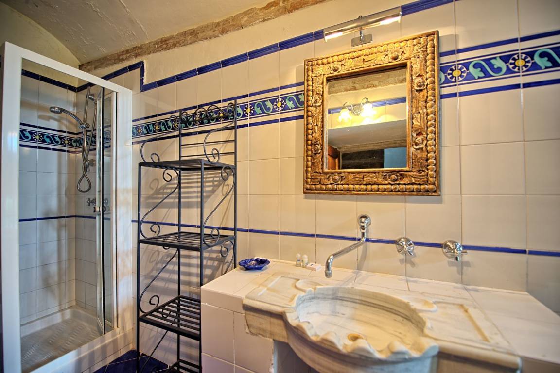 1.Stock (Zugang über eine charakteristische steinerne Wendeltreppe und über eine weitere Eingangstür): Doppelzimmer mit Klimaanlage und kleine Terrasse.
