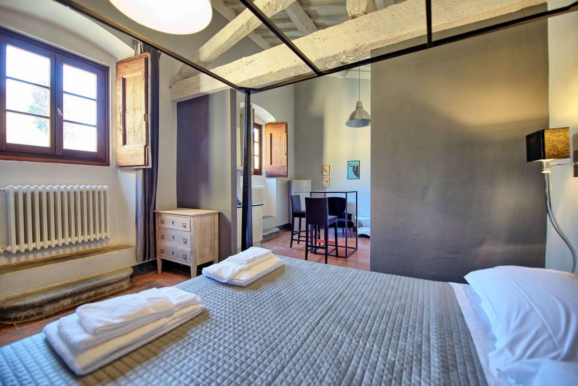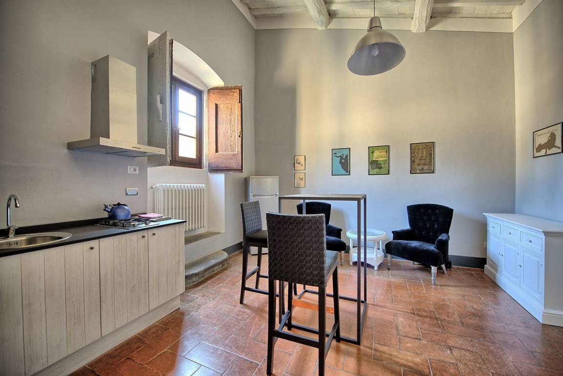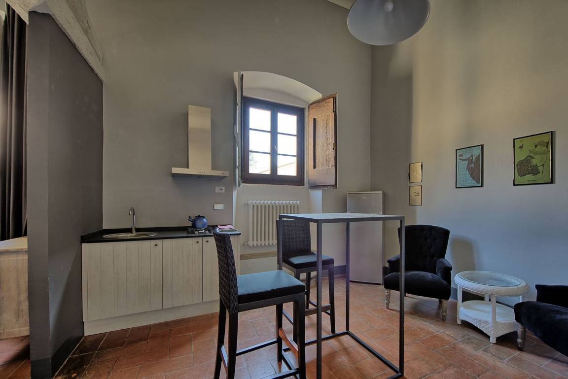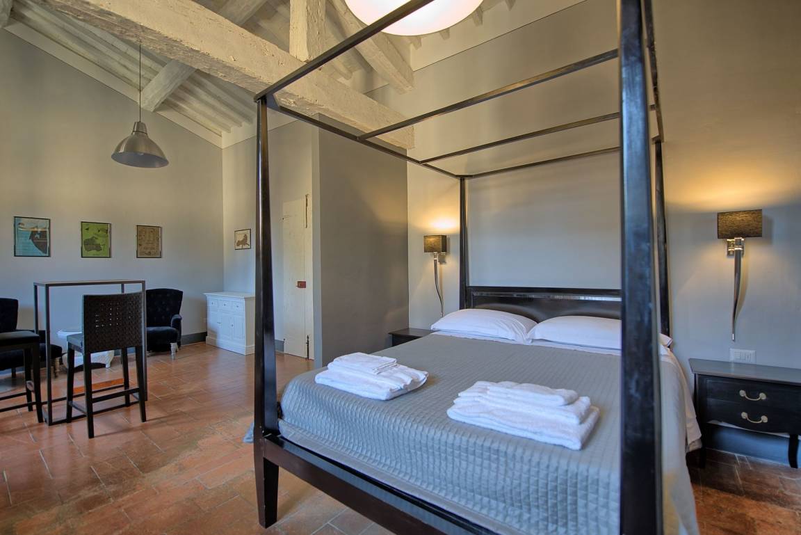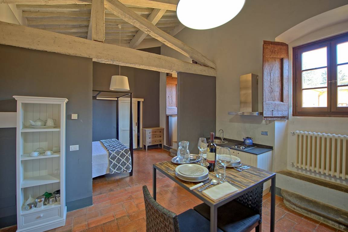 1.St.: kleiner Wohnraum mit Esstisch, Kochecke, Doppelzimmer (Baldachinbett) mit Bad mit Dusche.